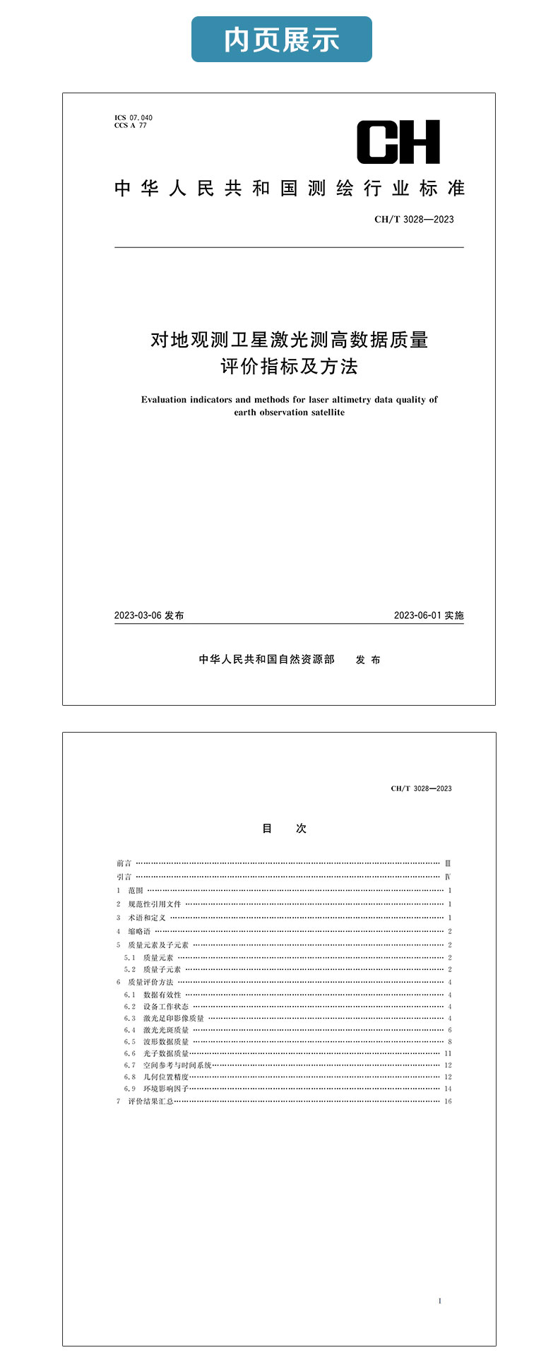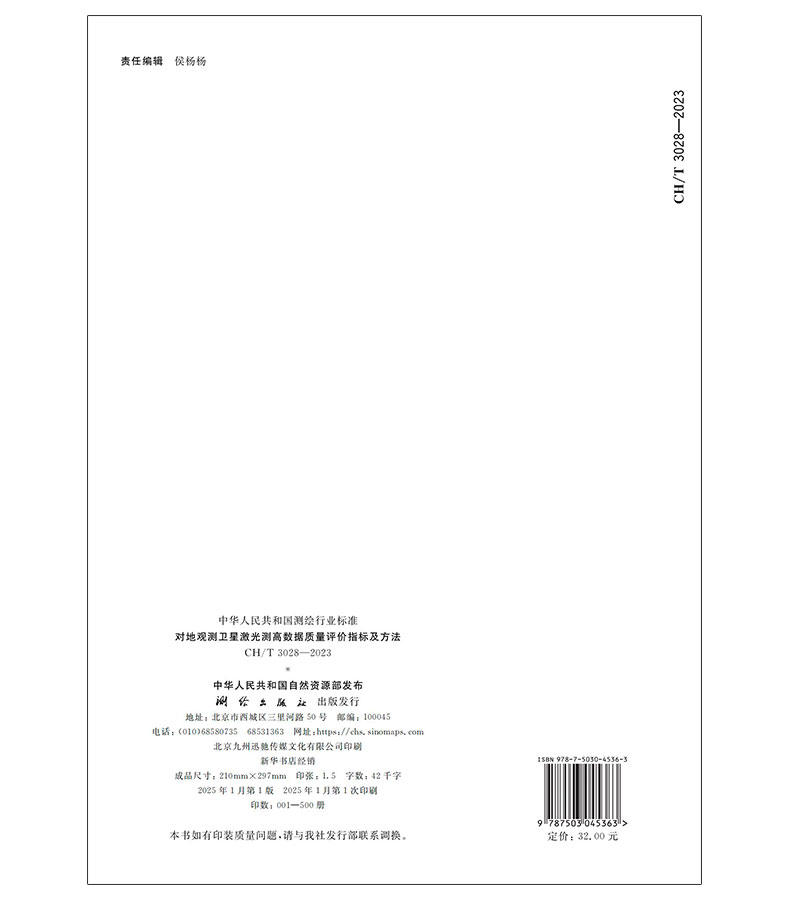 测绘行业标准·对地观测卫星激光测高数据质量评价指标及方法——CHT 3028—2023