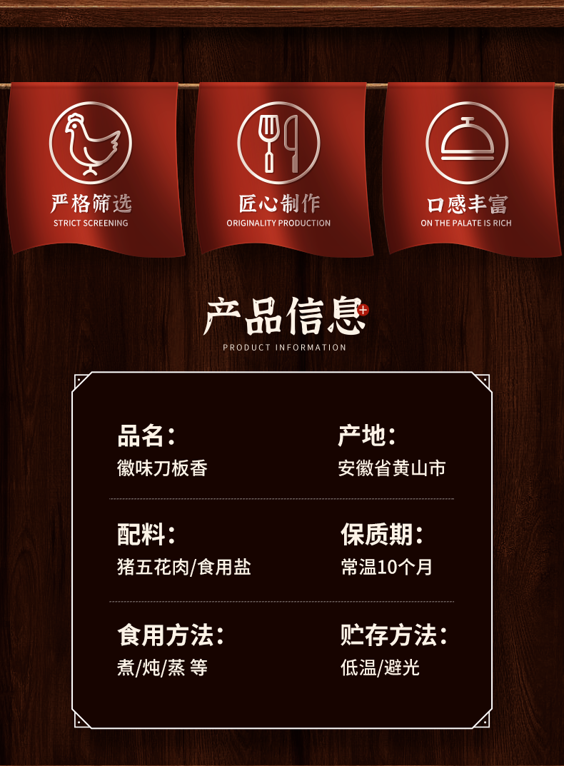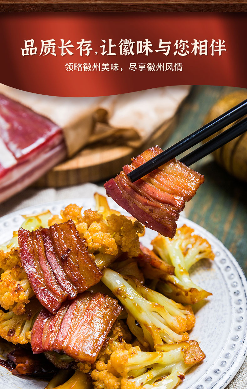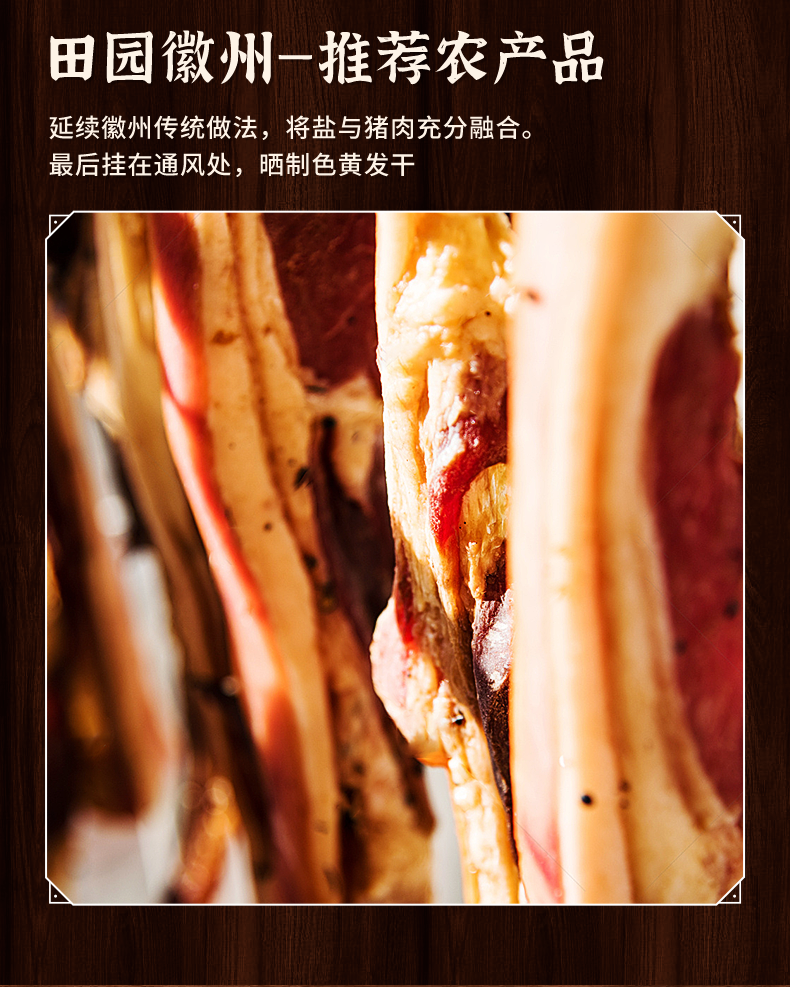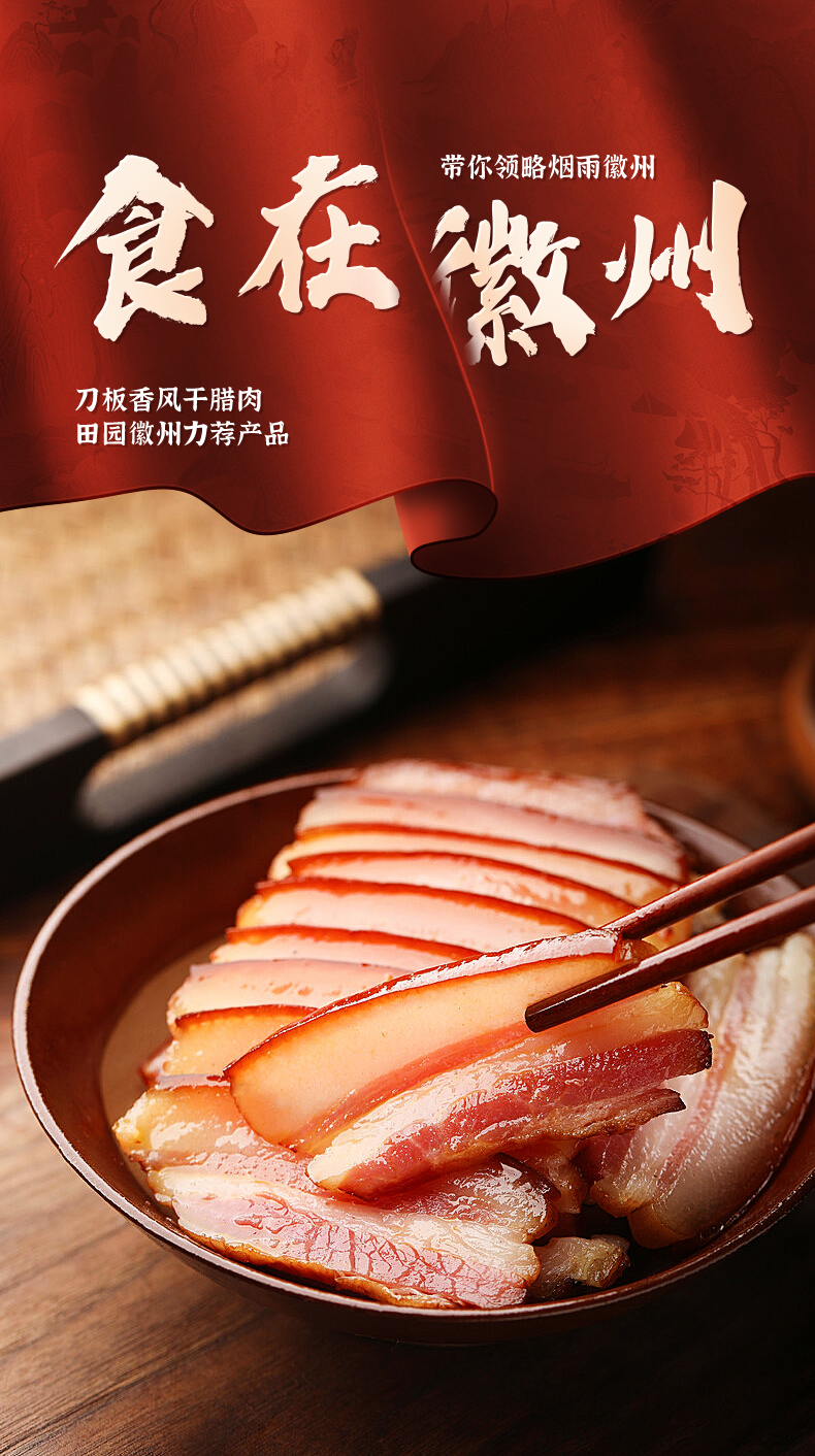 田园徽州牌刀板香500g/袋 腊肉五花肉