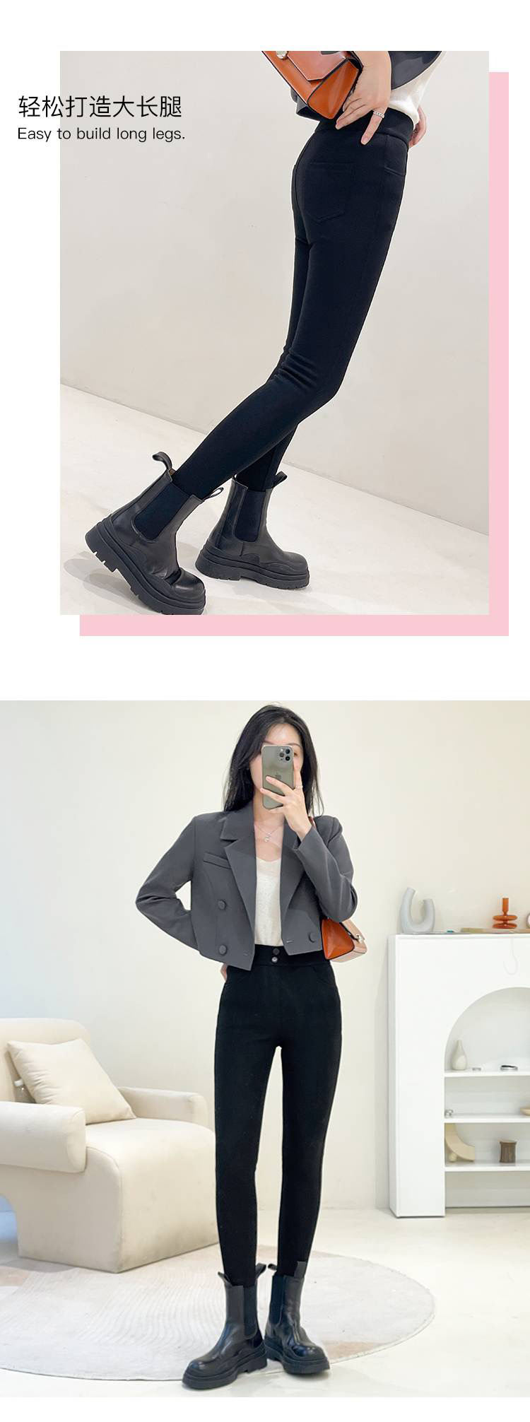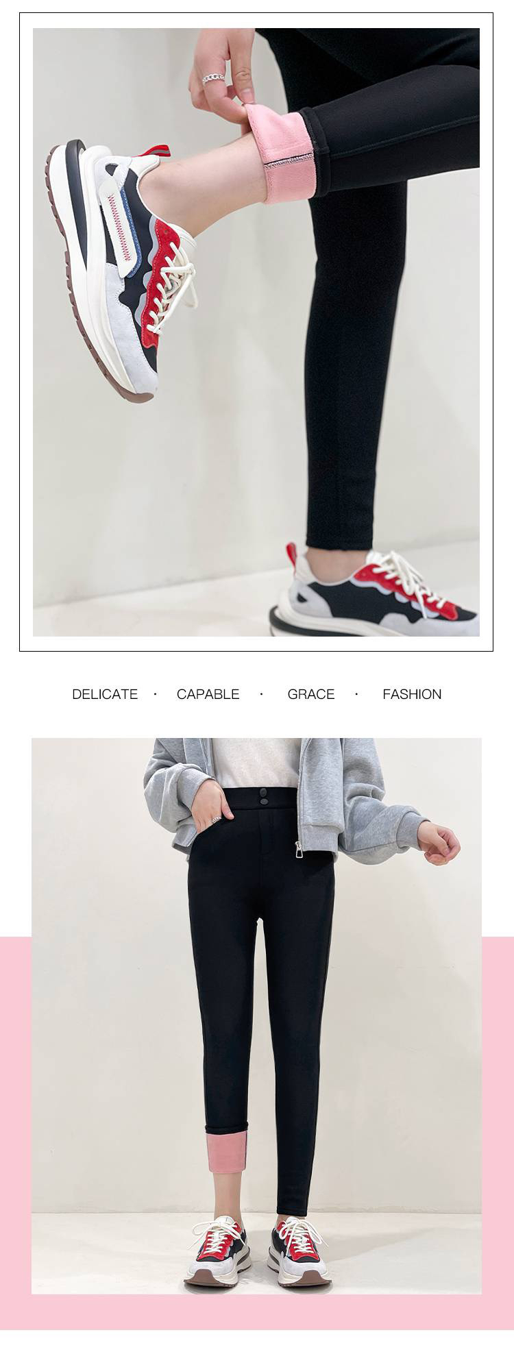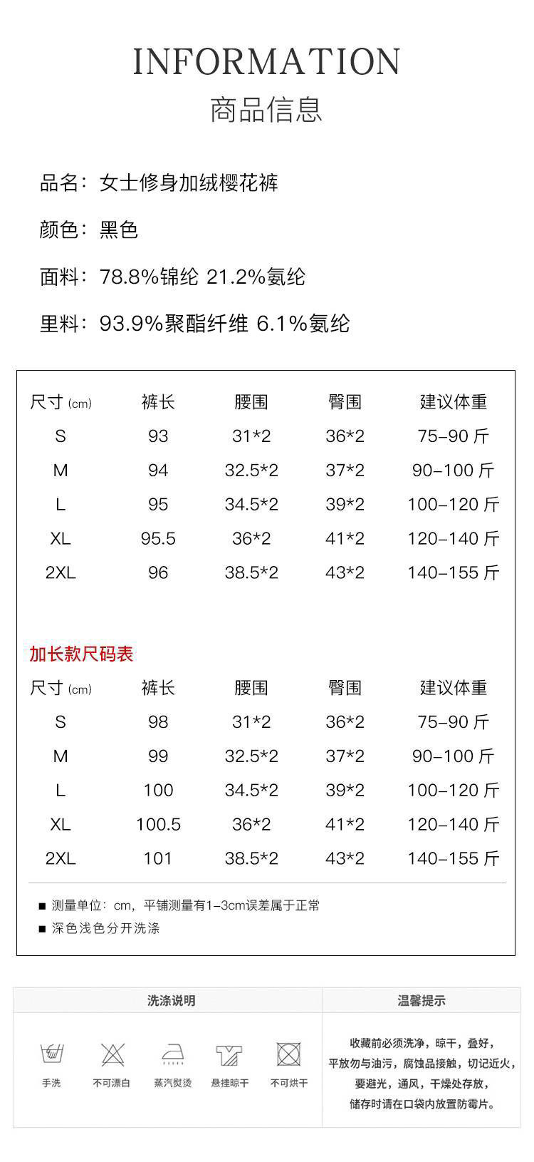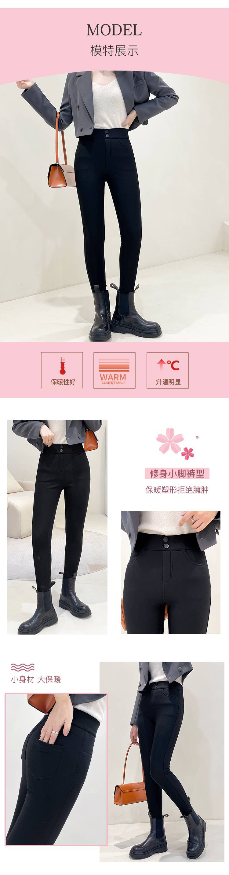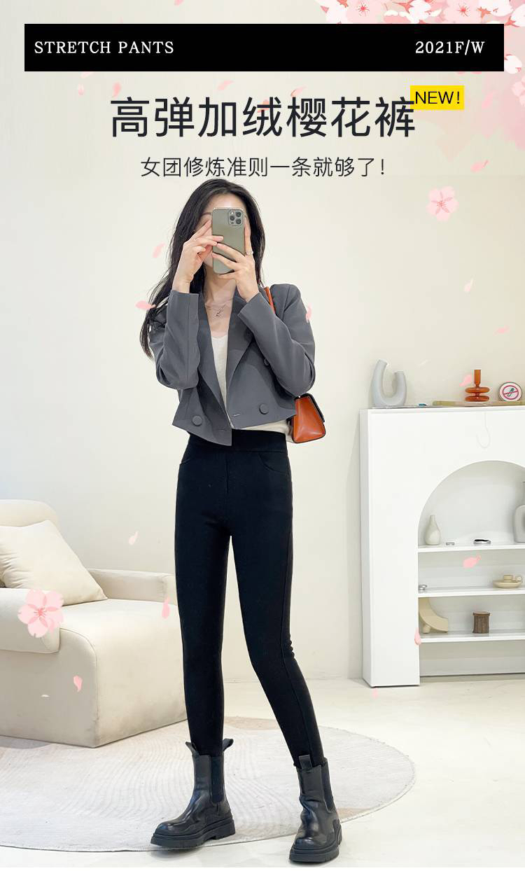韩国女士加绒保暖弹力樱花裤