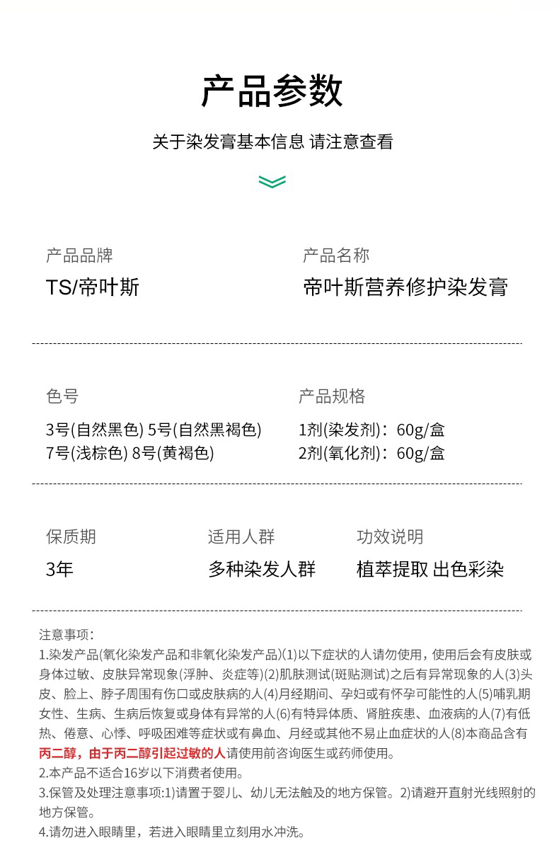 韩国TS帝叶斯染发膏