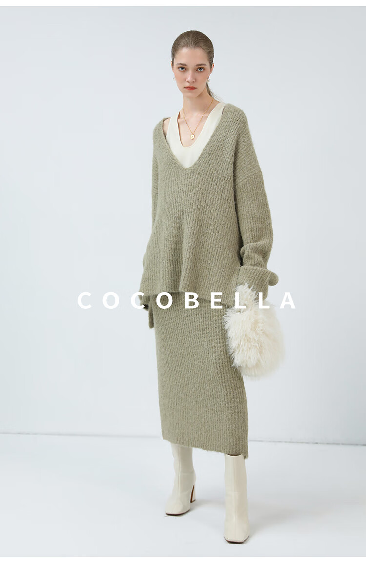 COCOBELLA慵懒风加厚针织半身裙气质混搭遮胯包臀长裙MZ3135
