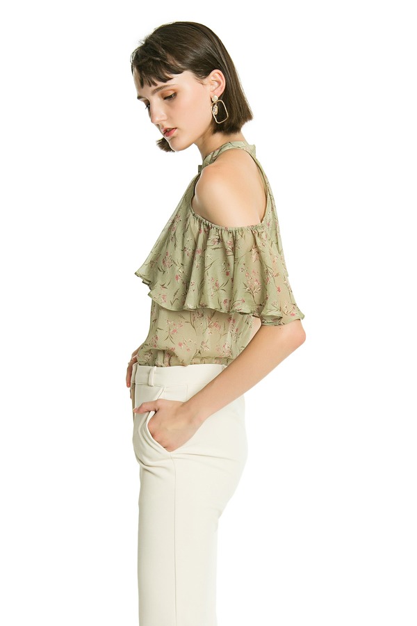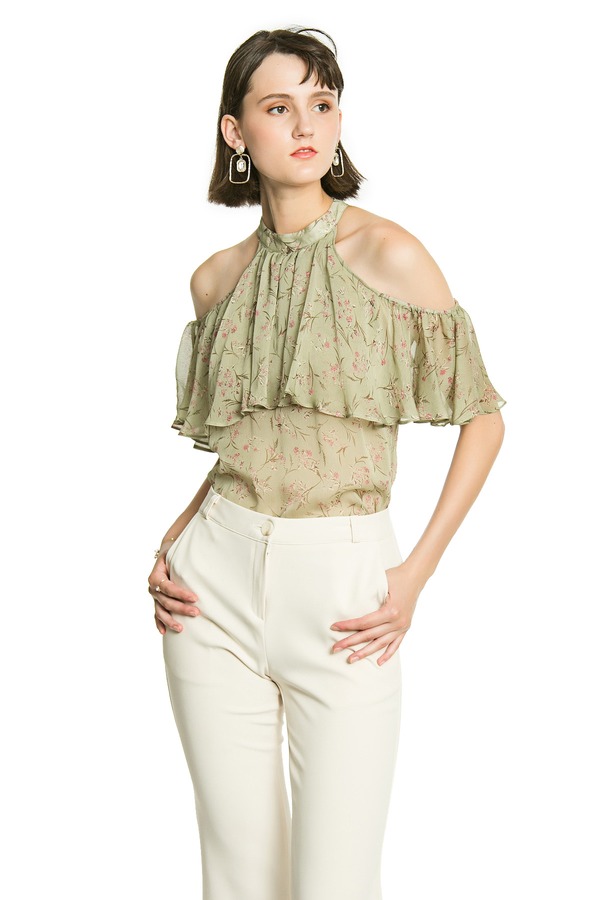SUMMER & SAGE 印花露肩荷叶边上衣 2876