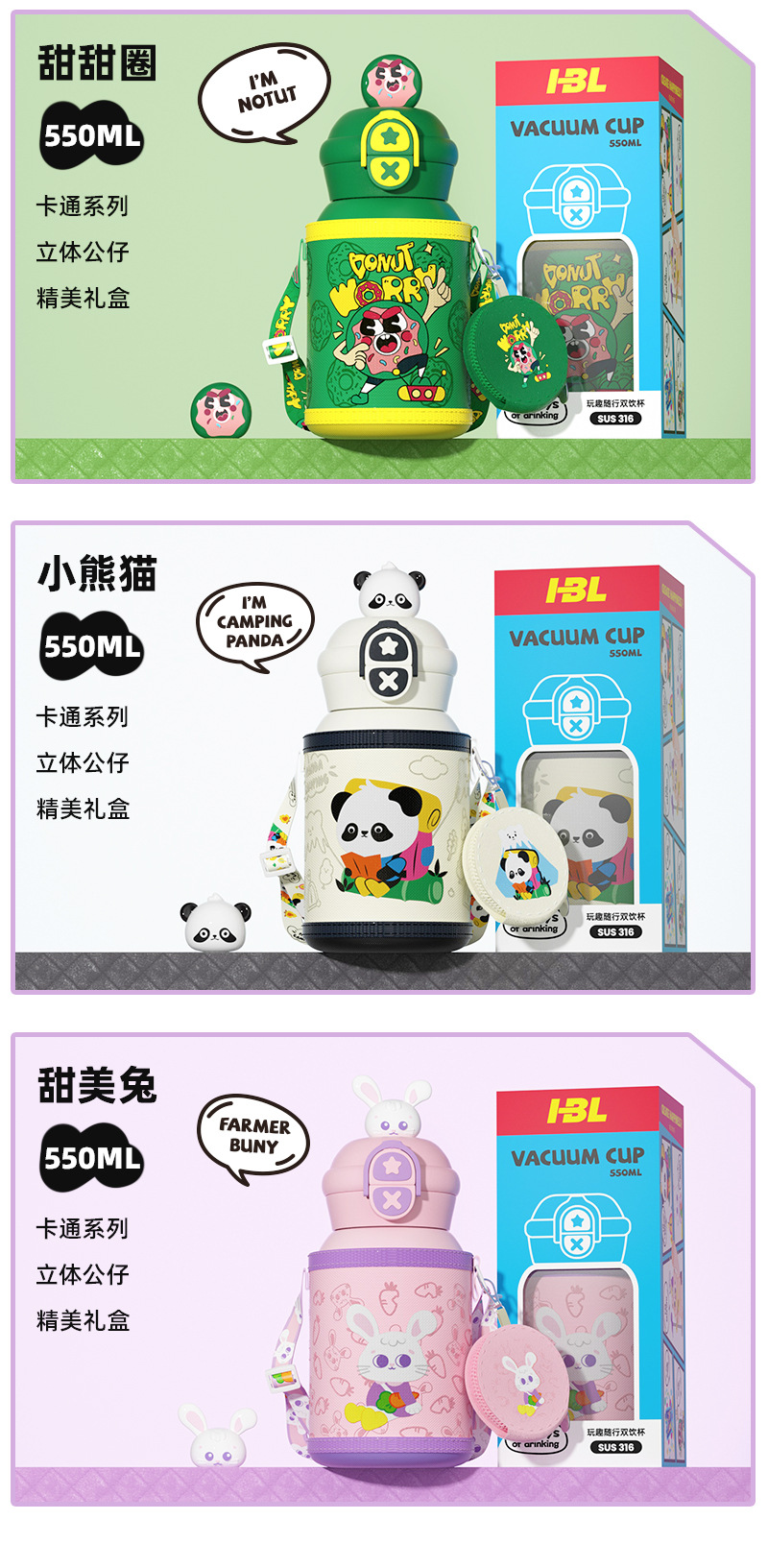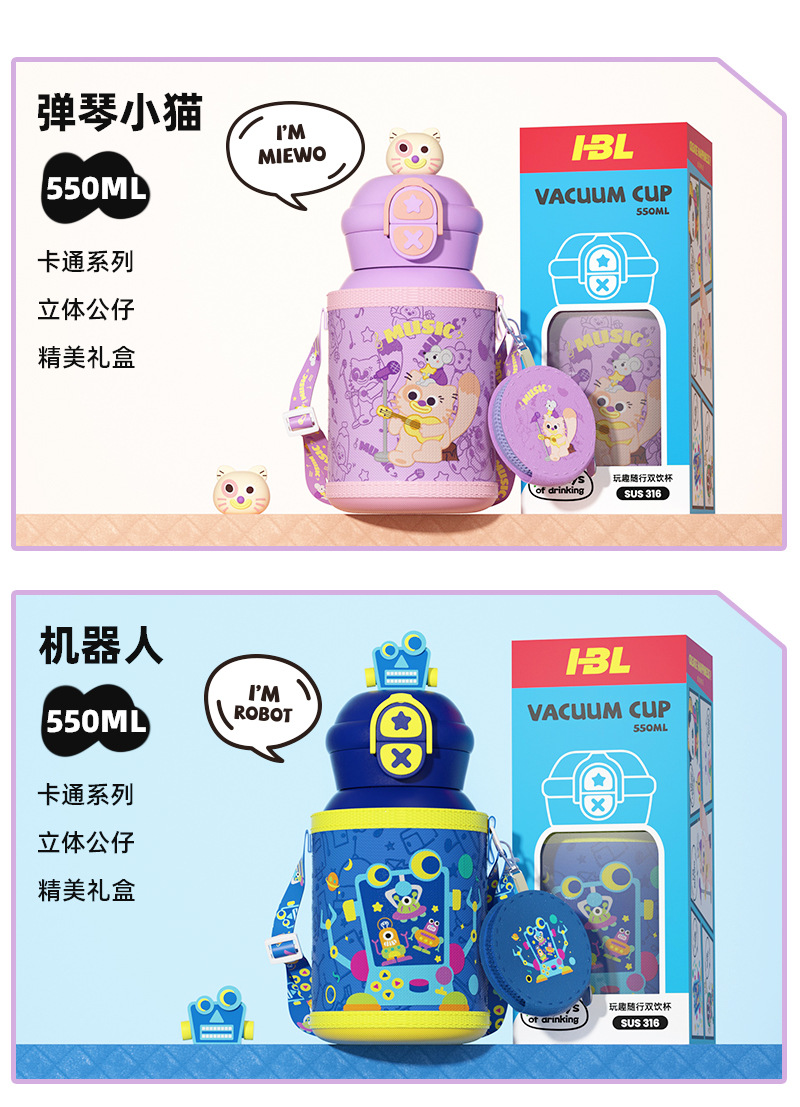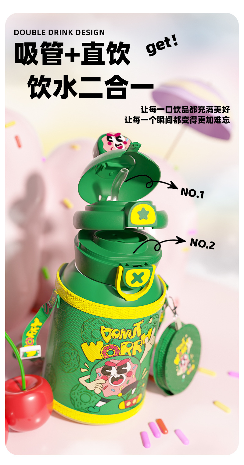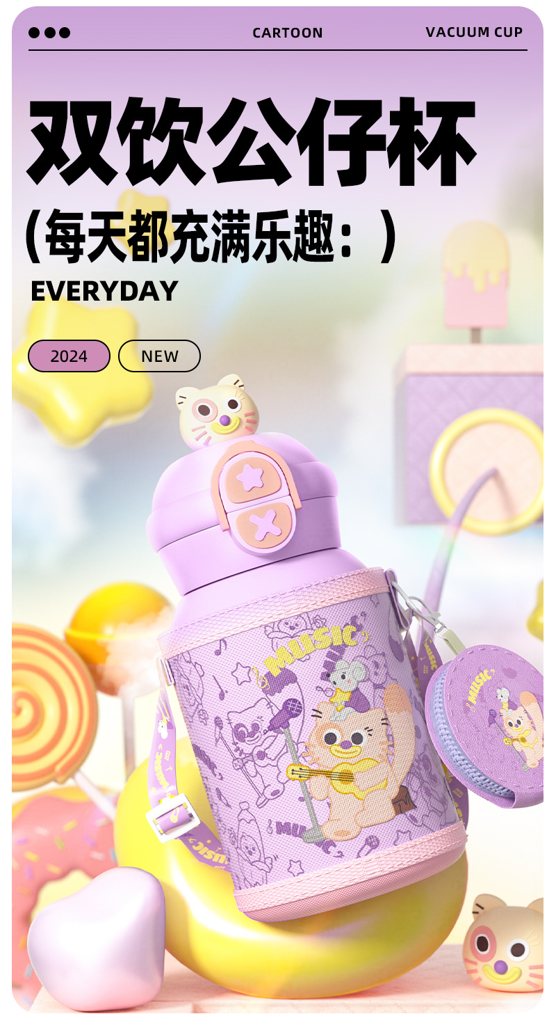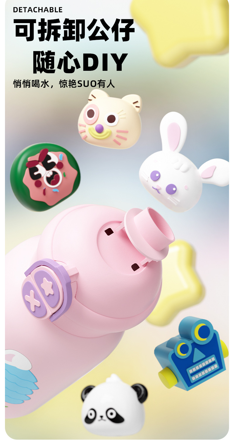 「一盖双饮!数色可选」卡通新款公仔儿童保温杯不锈钢男女水杯儿童学生可爱杯子餐饮用具