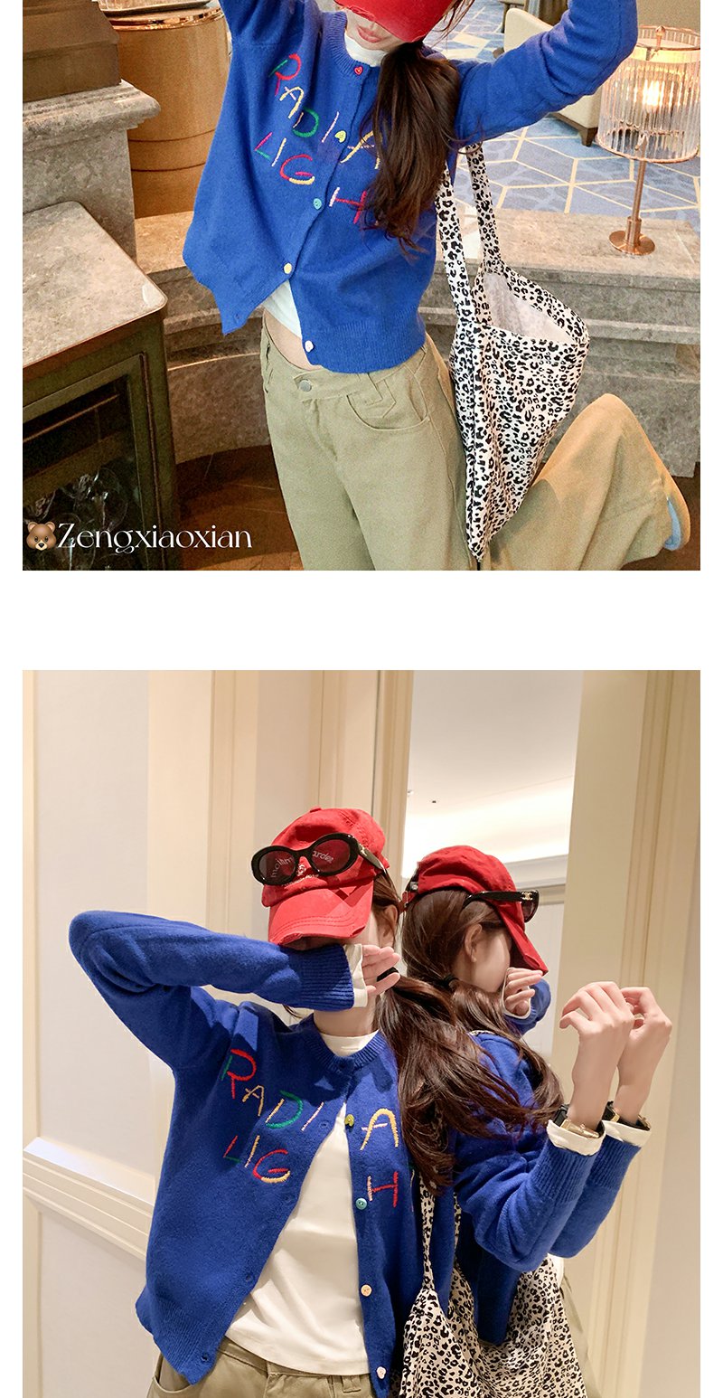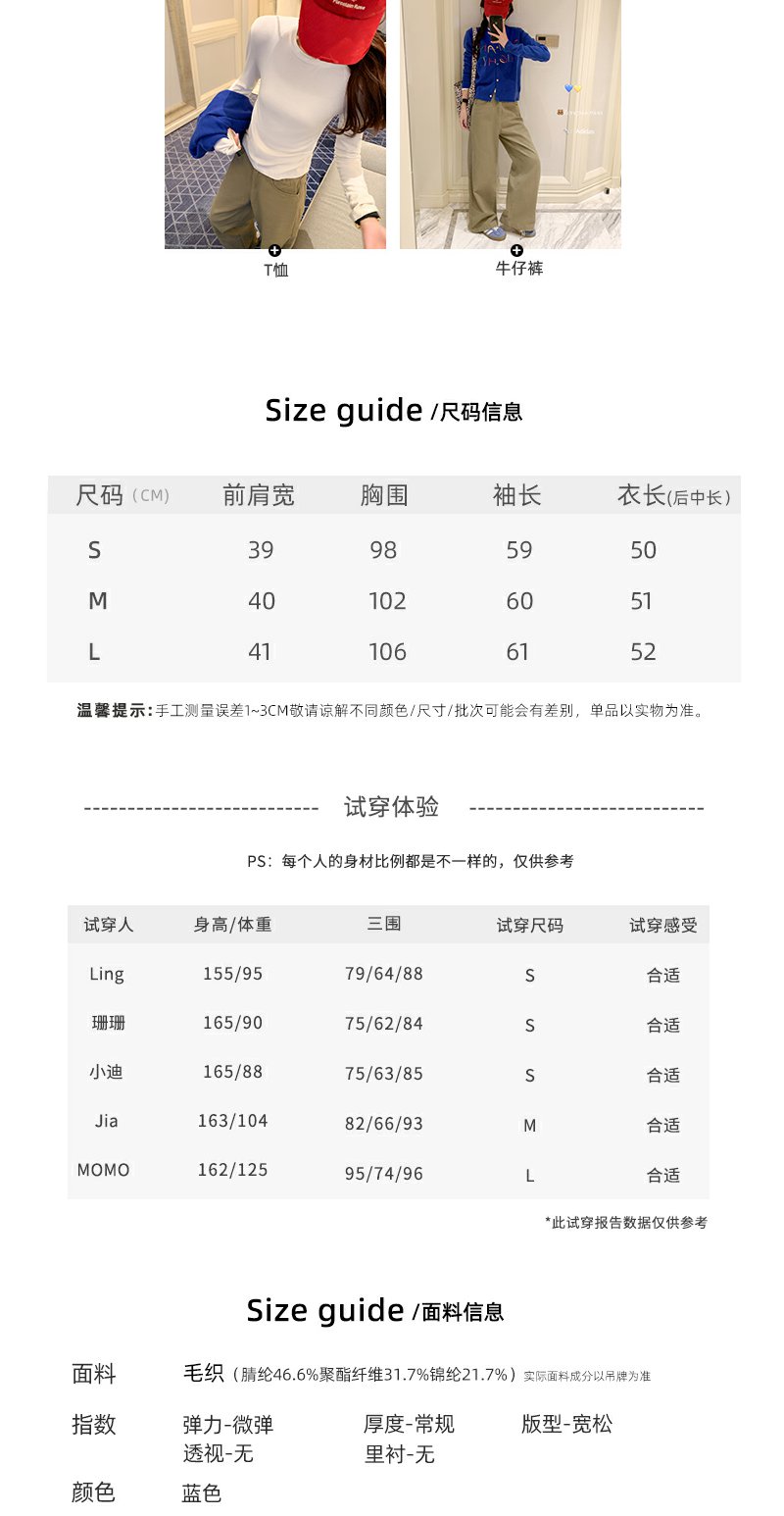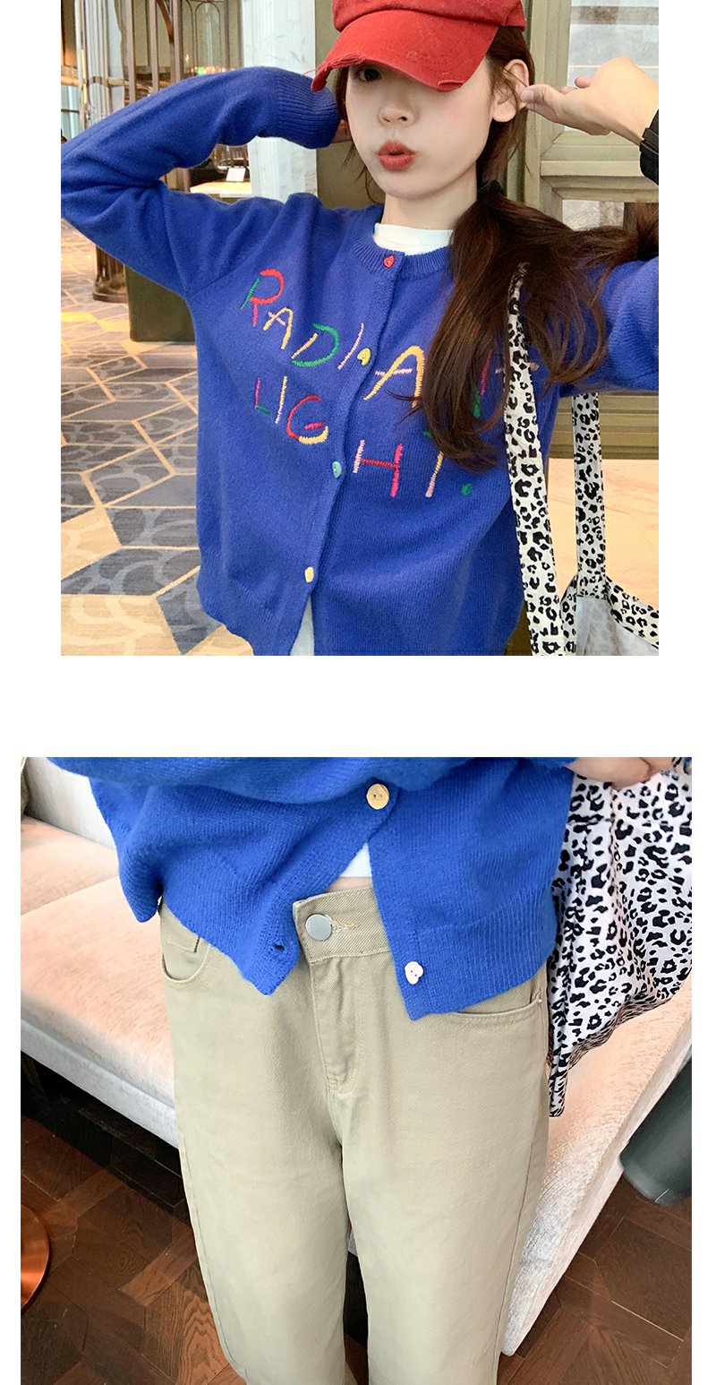 【189元任选2件】现货!蓝色刺绣毛衣开衫