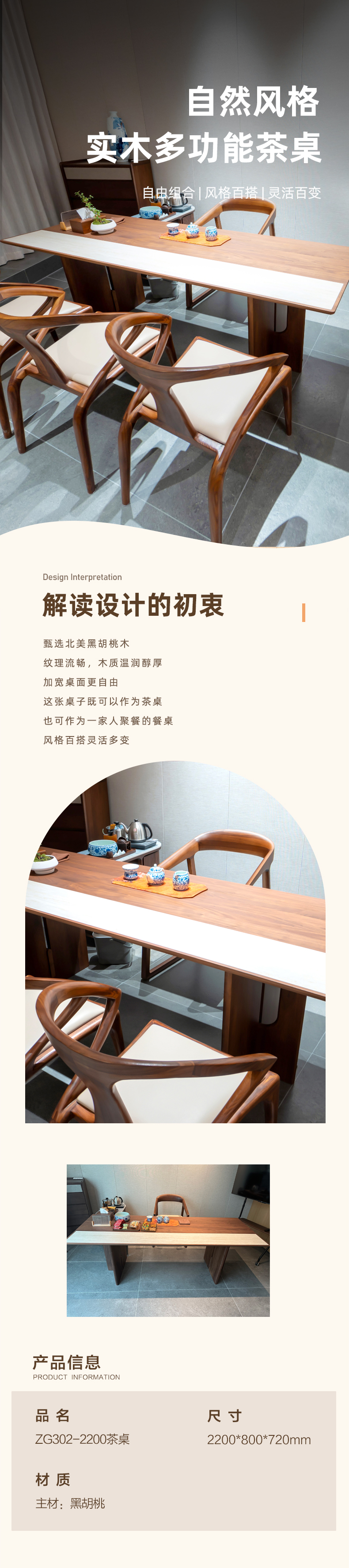 【中古风-ZG302-2200茶桌】黑胡桃/茶室/餐厅/客厅/茶桌/大板桌/餐桌/书桌
