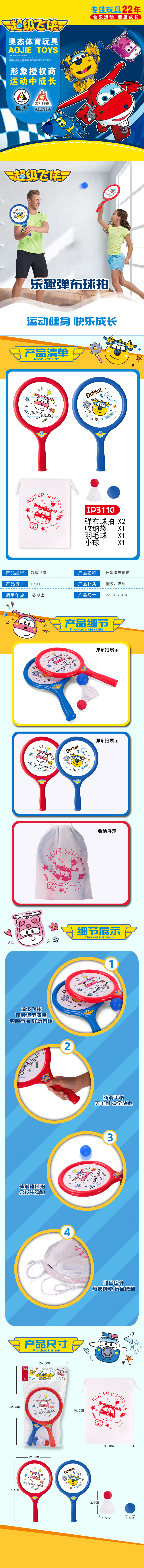 奥杰超级飞侠弹力球拍+收纳袋IP3110