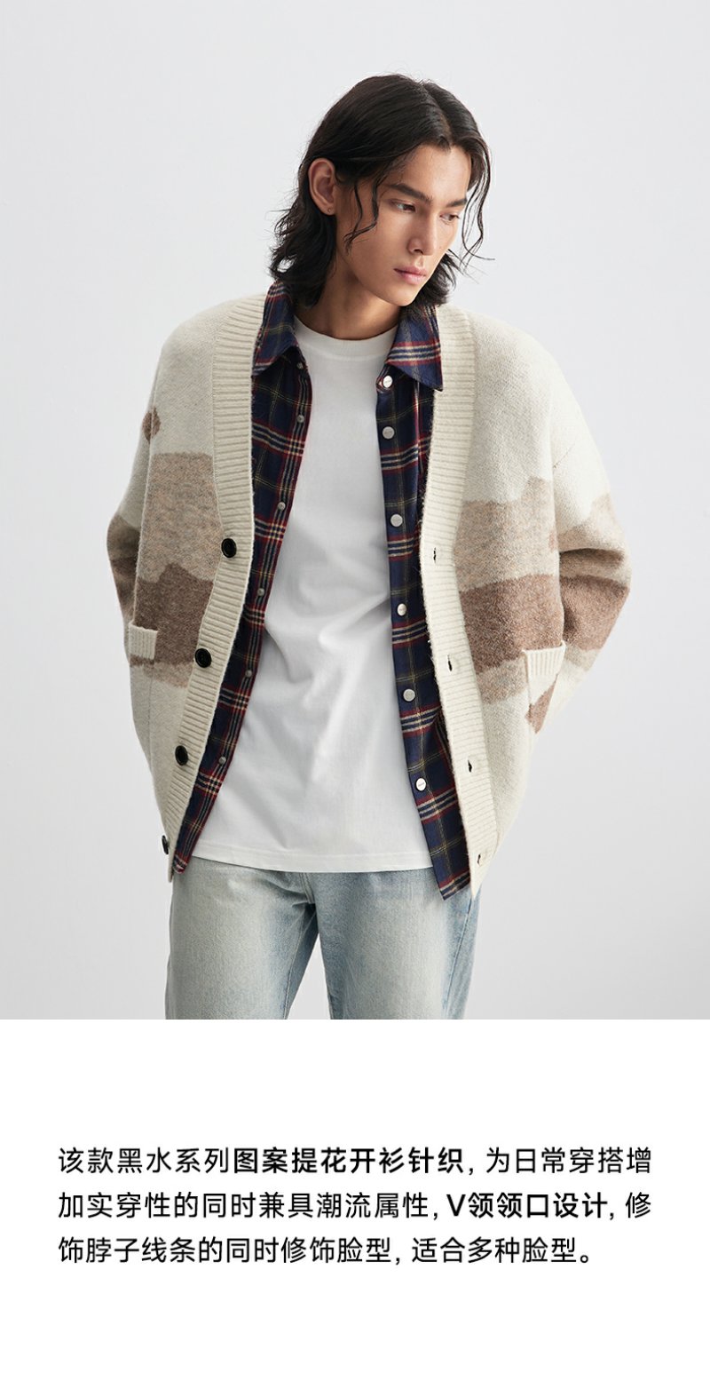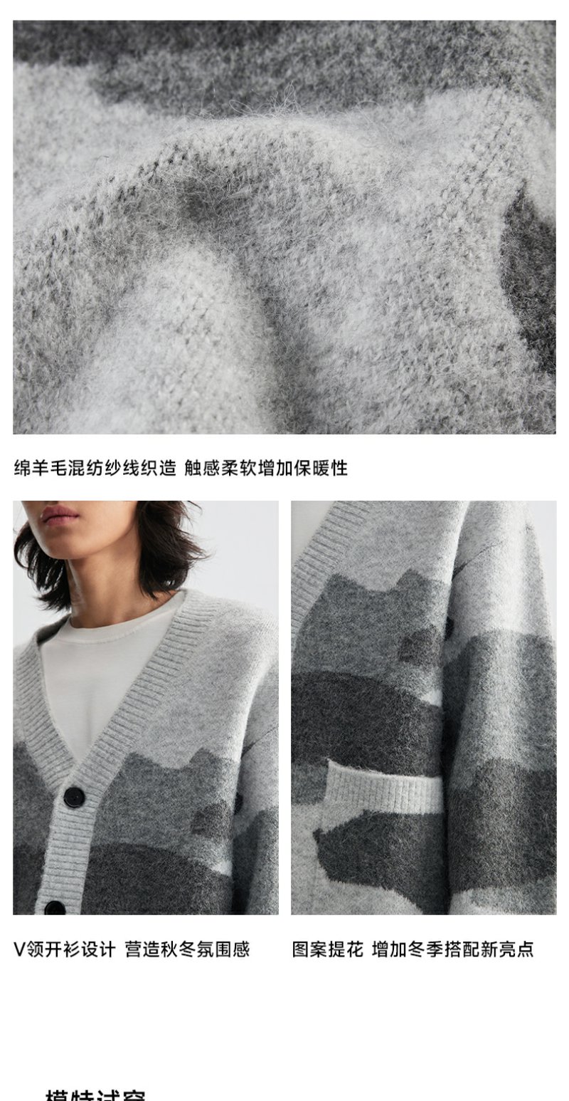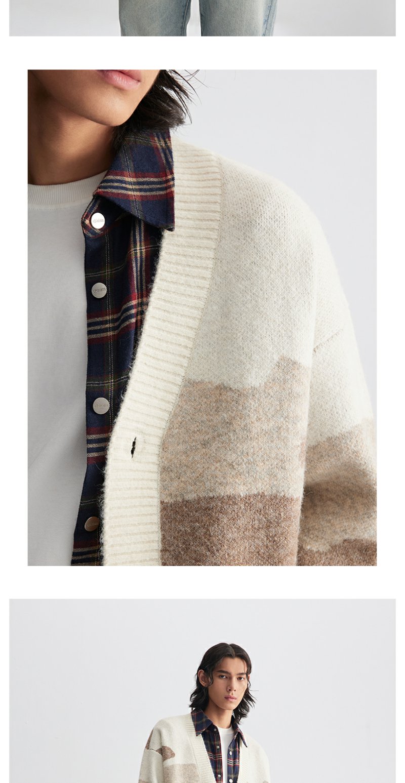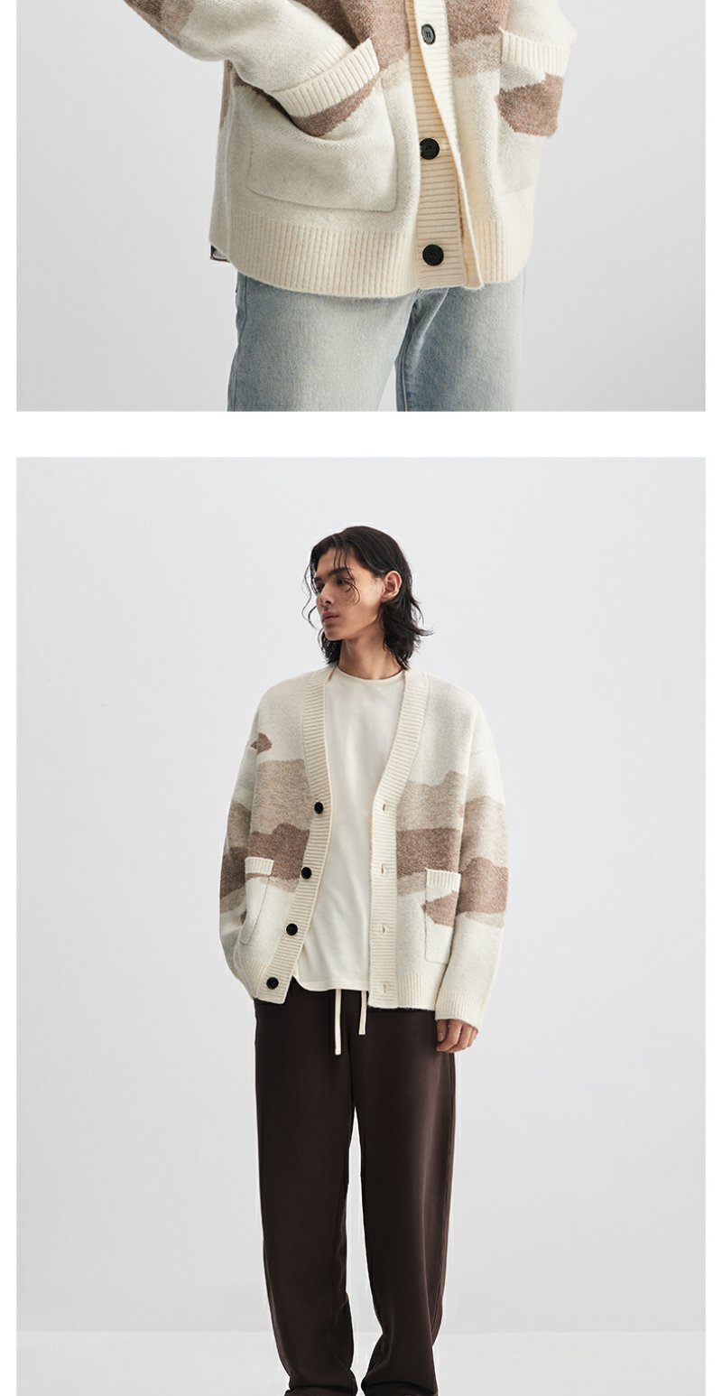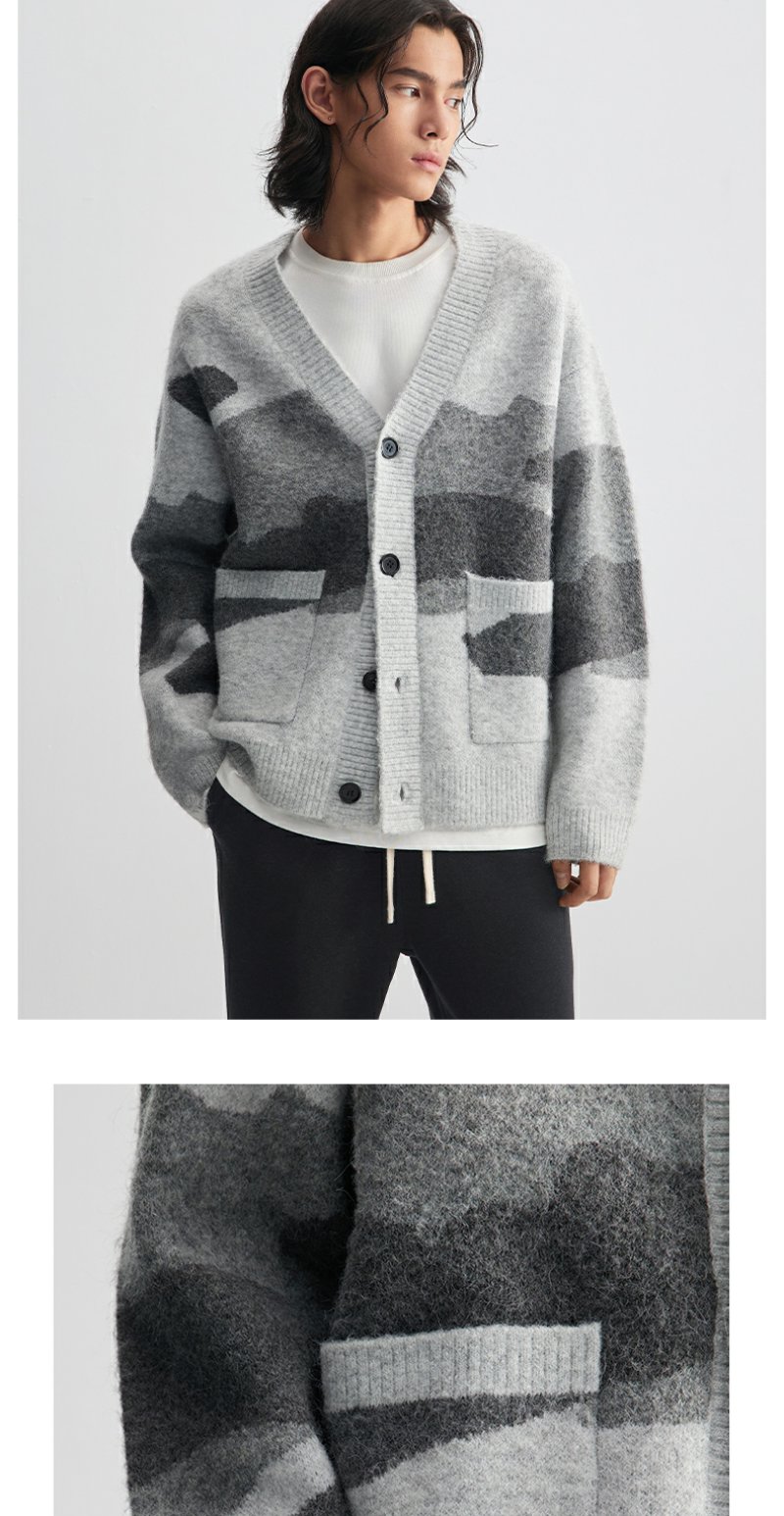 CHINISM赤尘 水墨云烟绵羊毛纱线开衫毛衣男秋冬针织衫上衣外套