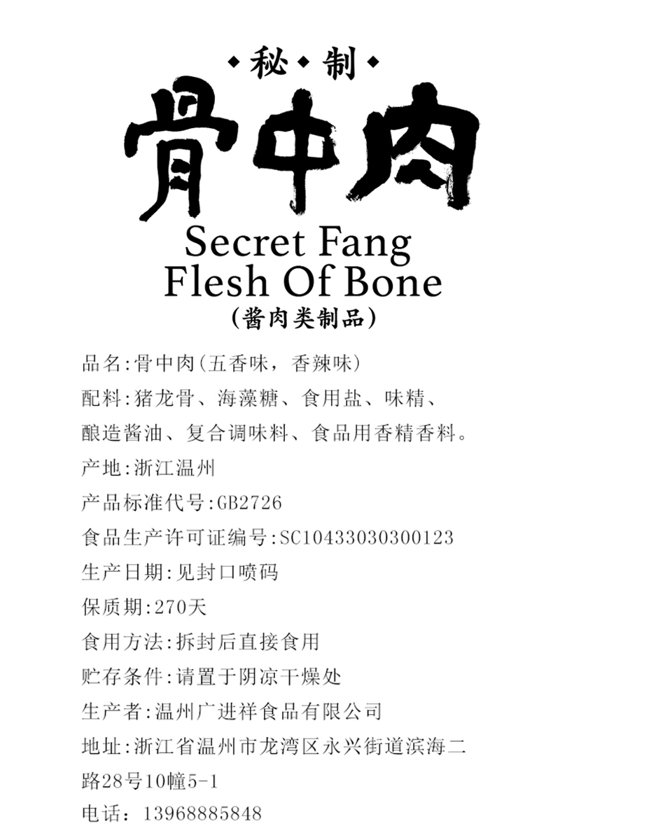 广进祥120克秘制骨中肉五香味 香辣味 *2