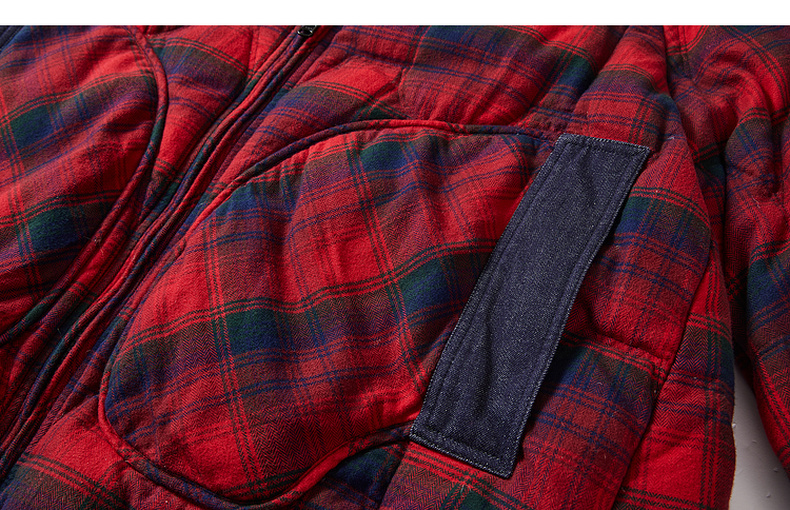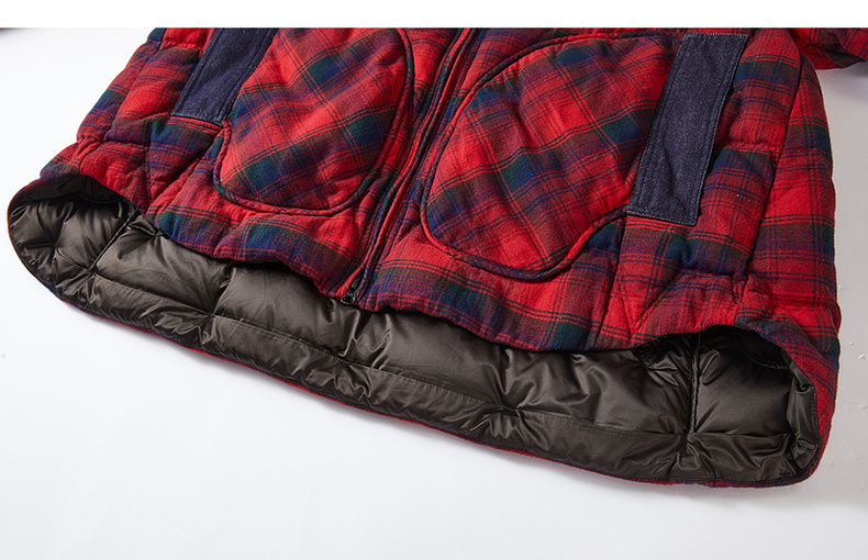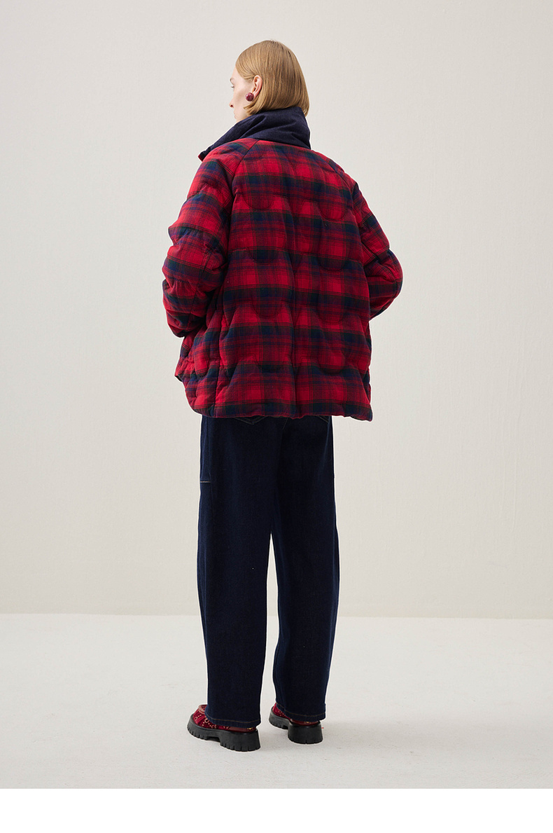 谜底两面穿羽绒服2025冬季新品红黑格子牛仔拼接保暖女254MY1618