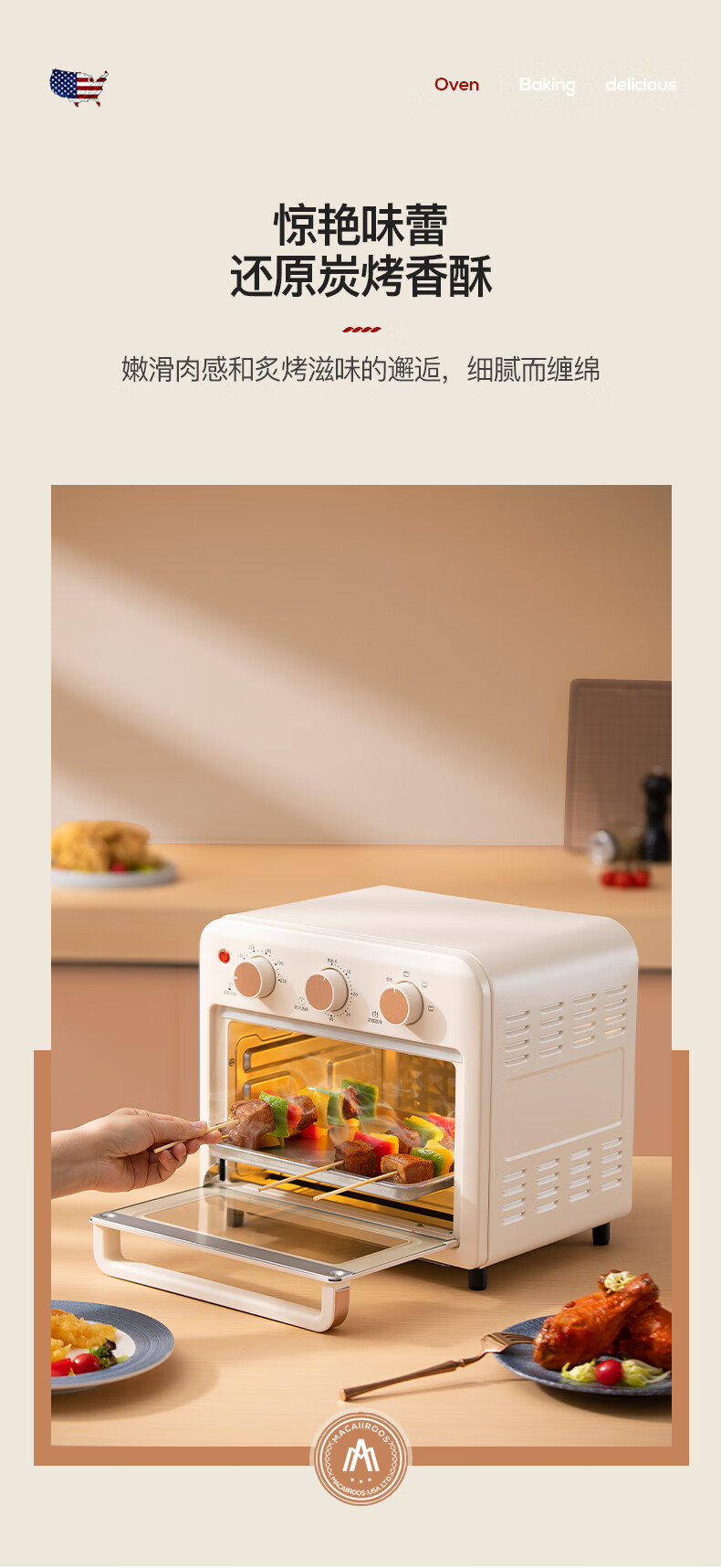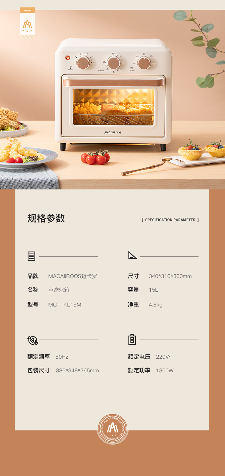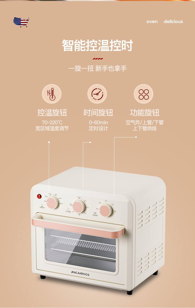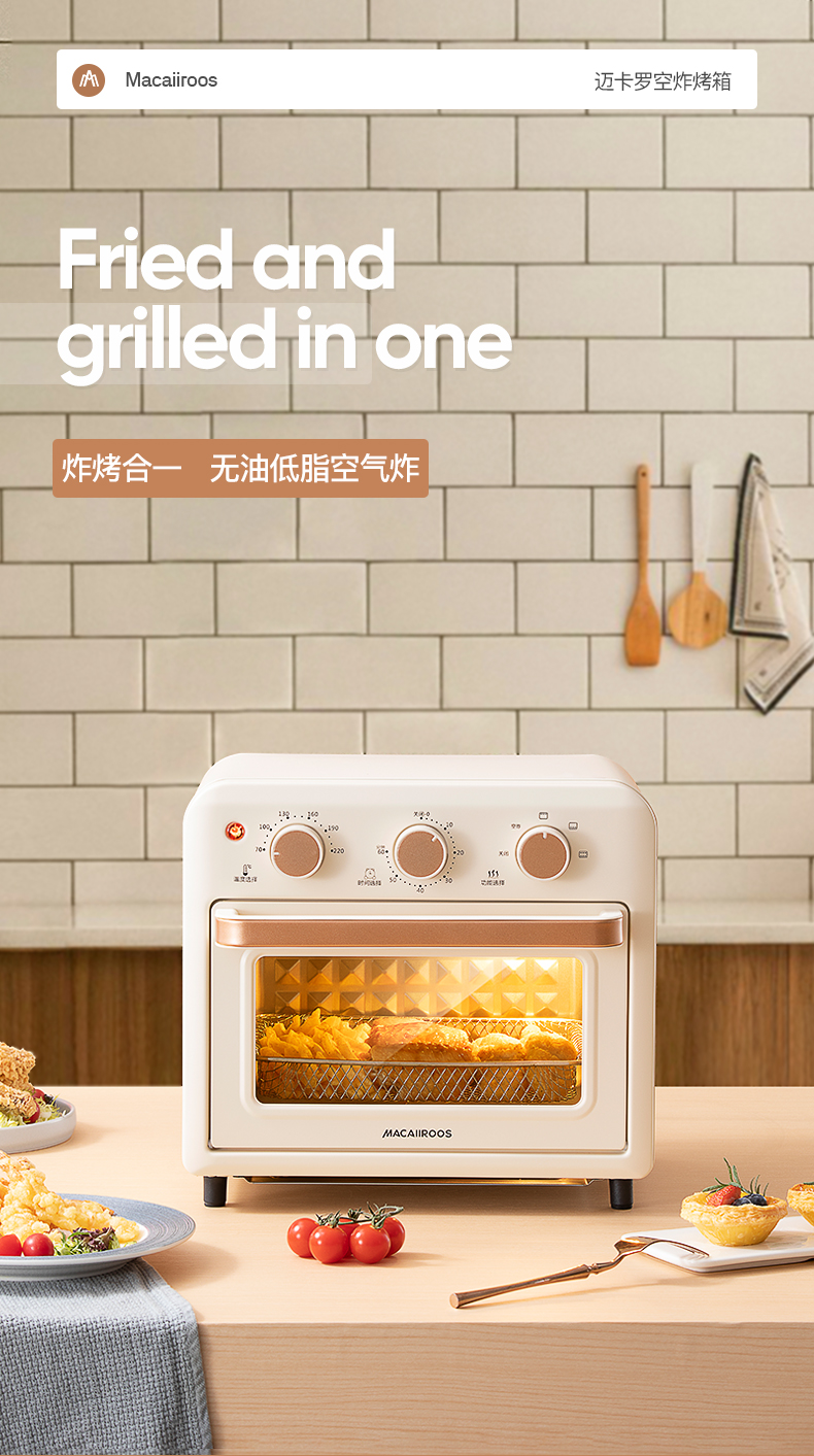 【小家电】迈卡罗MC-KL15M烤箱15L家用空炸烤箱高颜值早餐机HF