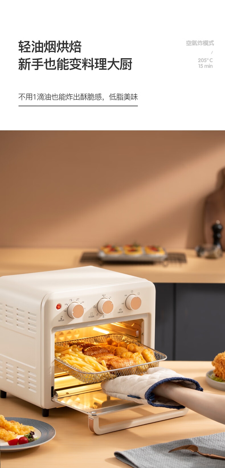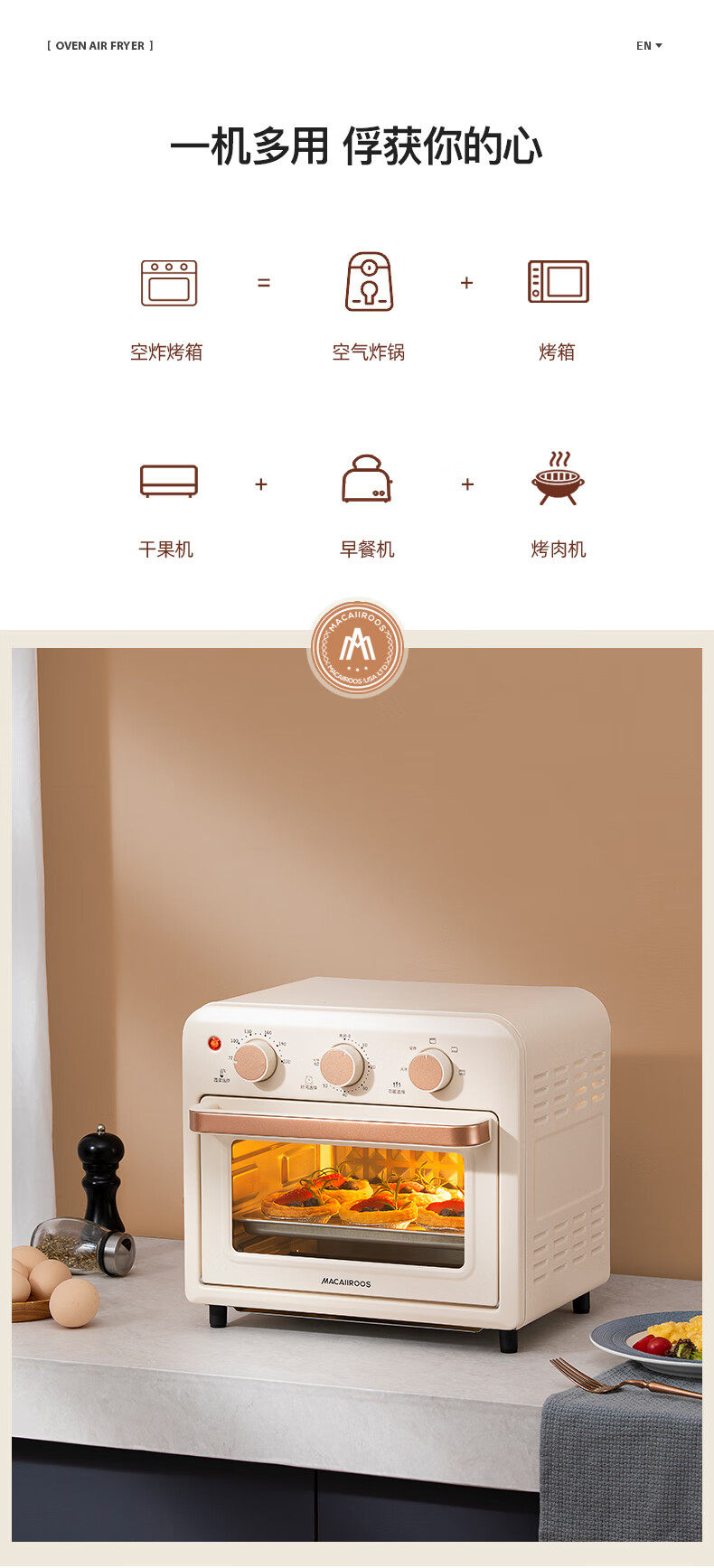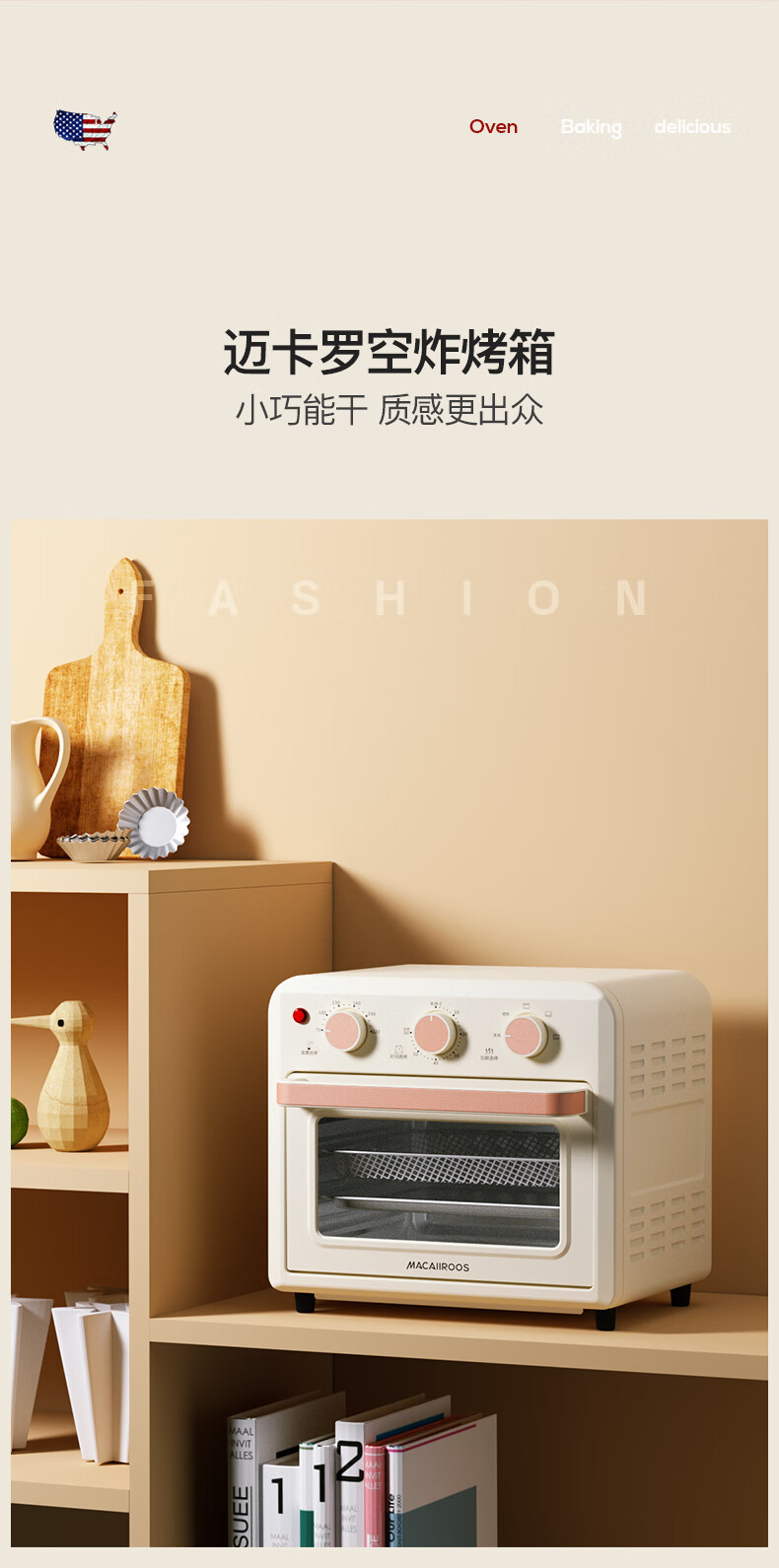 【小家电】迈卡罗MC-KL15M烤箱15L家用空炸烤箱高颜值早餐机HF