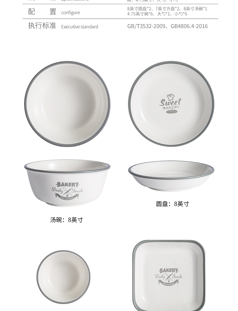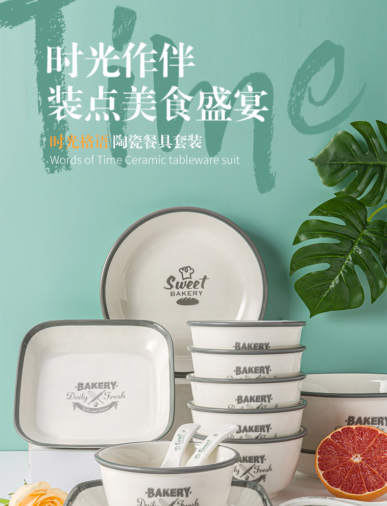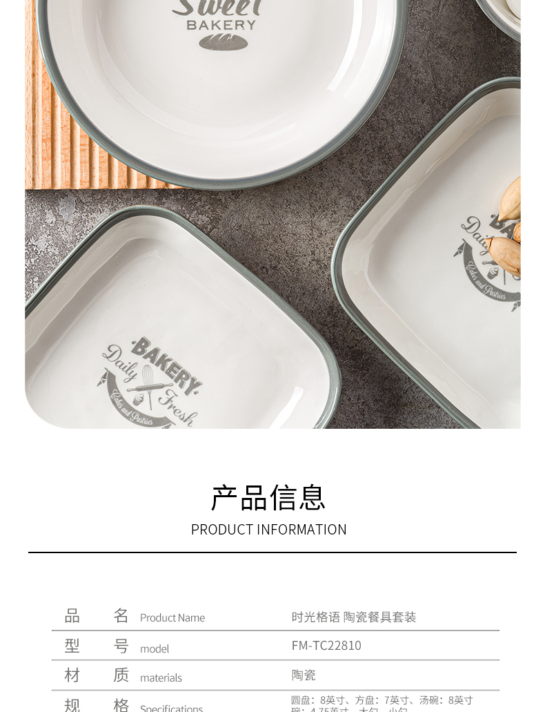 菲米生活时光格语碗盘碟套装FM-TC22810