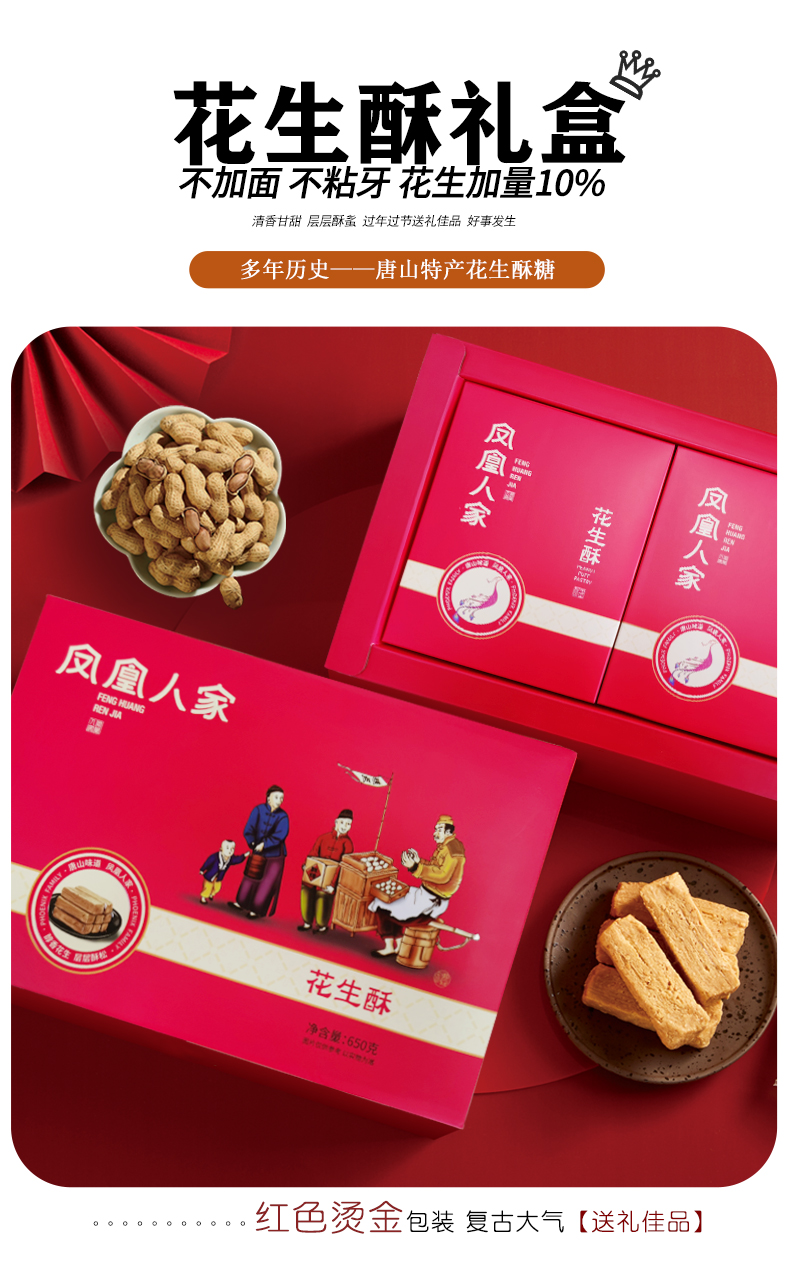 优选丨凤凰人家唐山特产花生酥糖礼盒装650g常各庄老式手工传统糕点年货