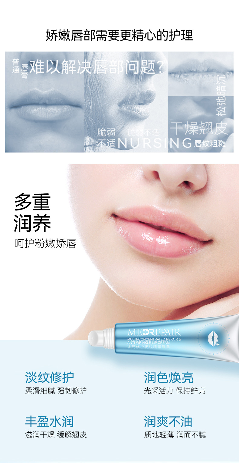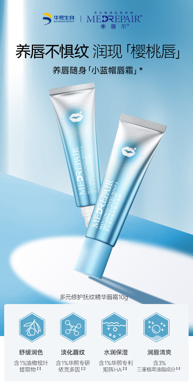 米蓓尔多元修护抚纹精华小蓝帽唇霜10g 滋润补水唇膏淡化唇纹唇部 心选到家