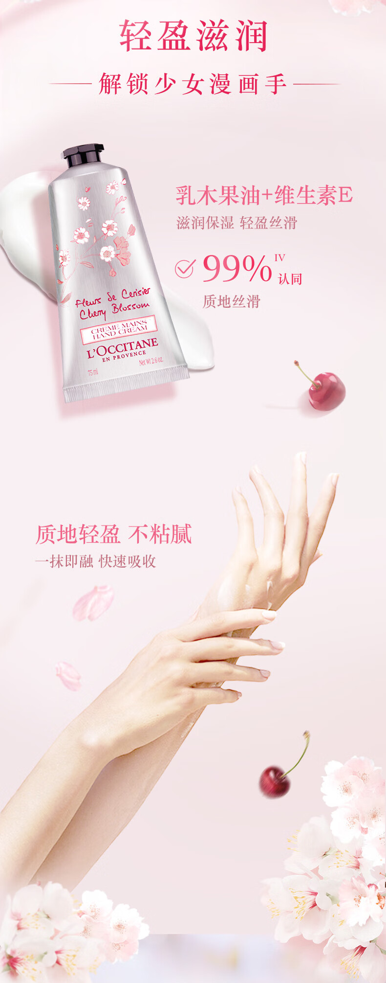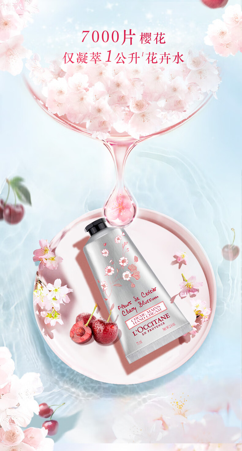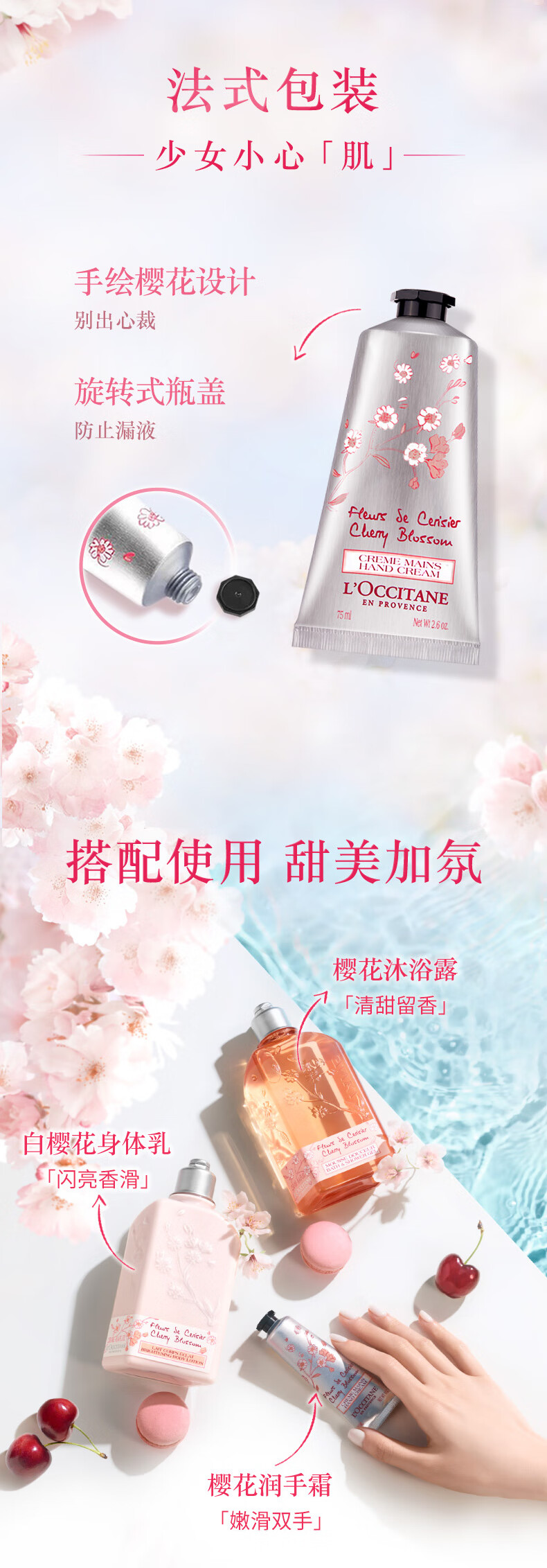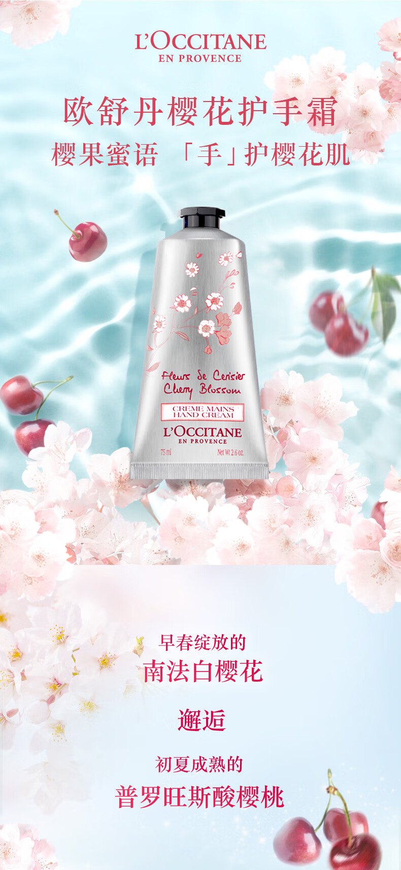 欧舒丹甜蜜樱花护手霜75ml手膜滋润防干裂保湿易吸收留香送男女友礼物 心选到家