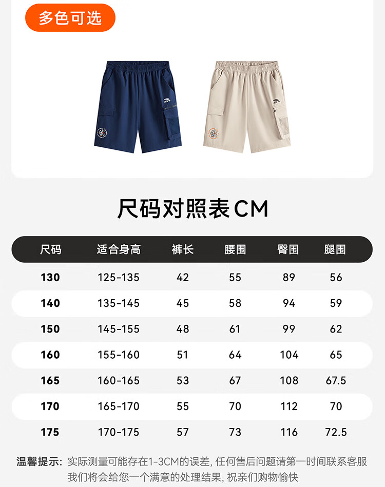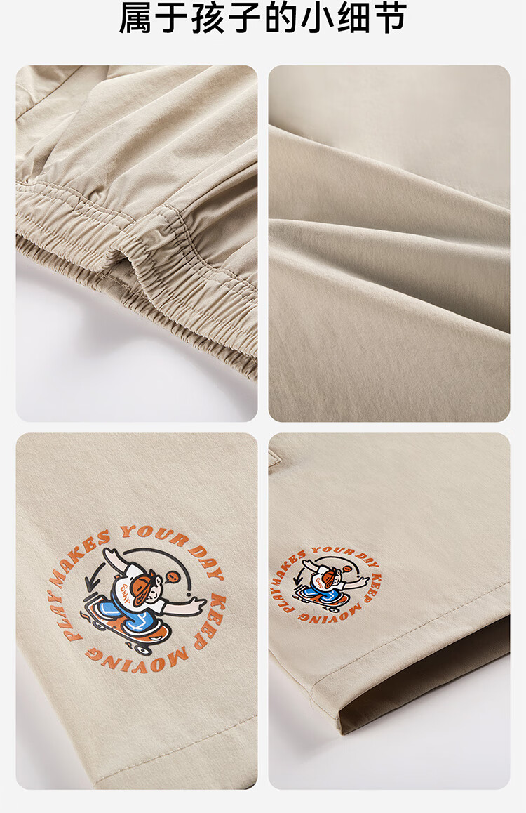 安踏儿童裤子男大童2025夏季舒适透气宽松梭织五分裤352538501