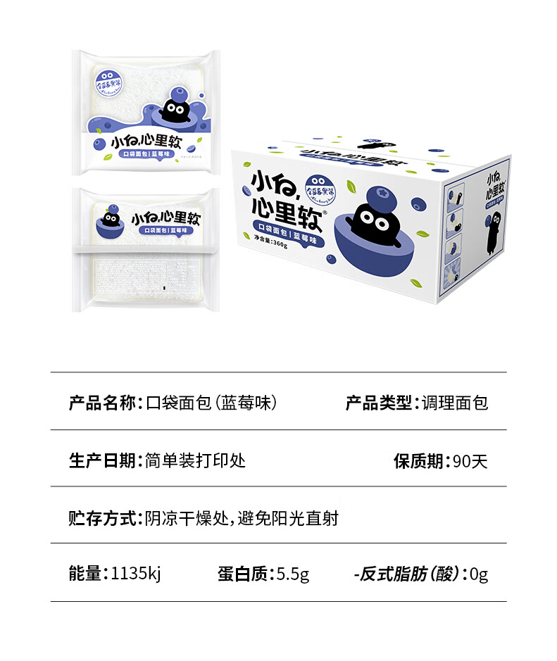 小白心里软蓝莓大口袋360g夹心饱腹面包
