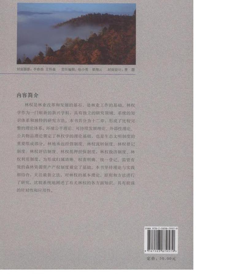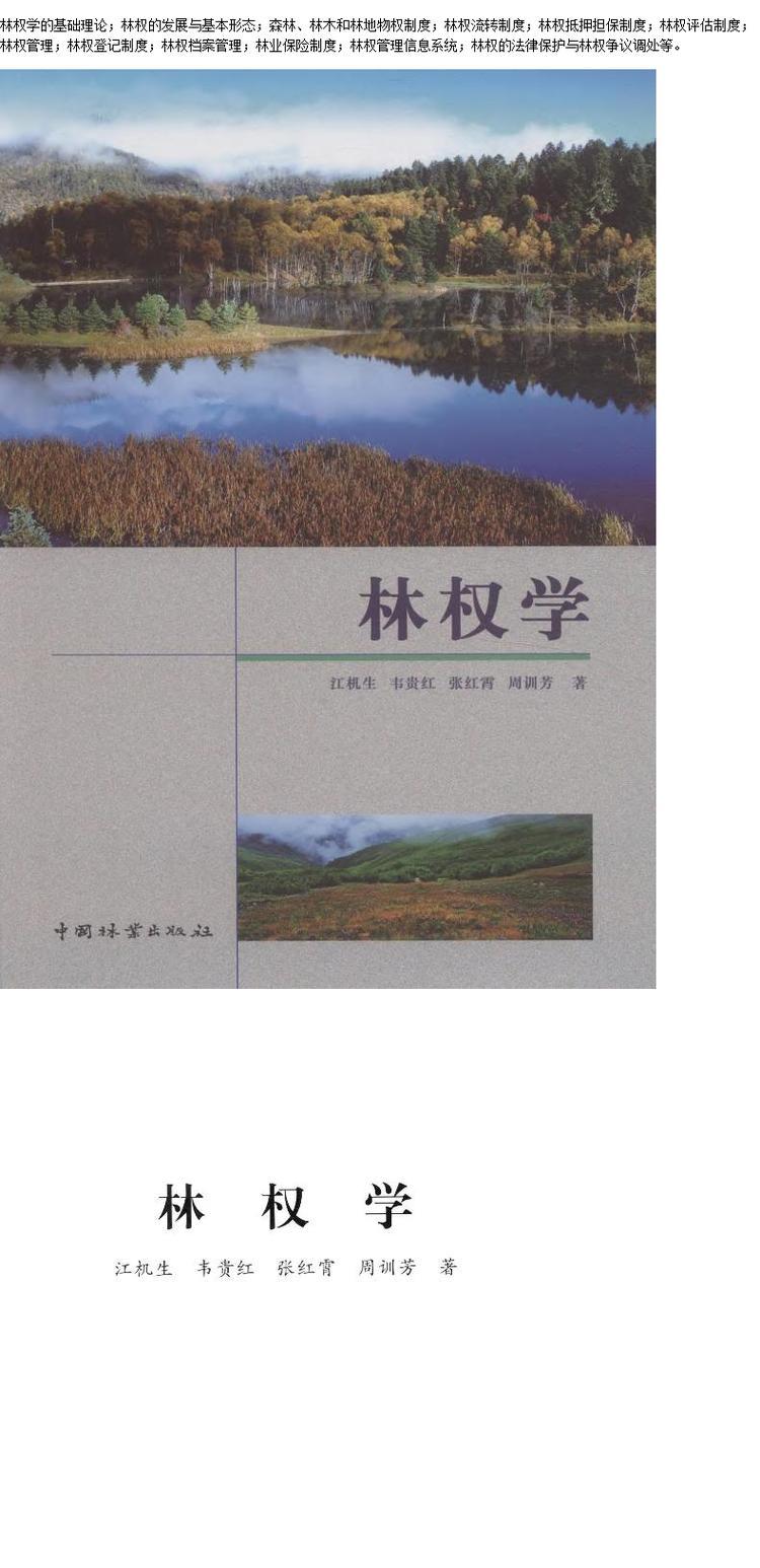 林权学 江机生 7957 基础理论 森林 林木 林地物权制度 林权抵押 担保 评估 管理登记制度 中国林业出版社