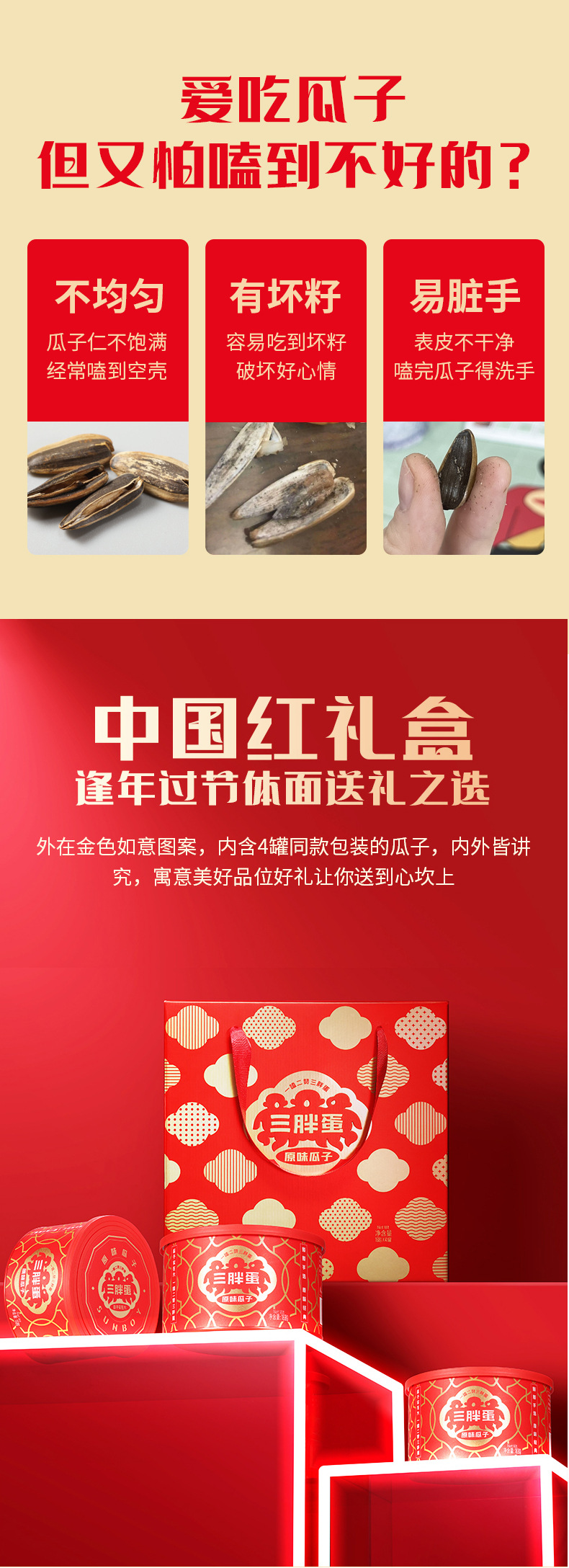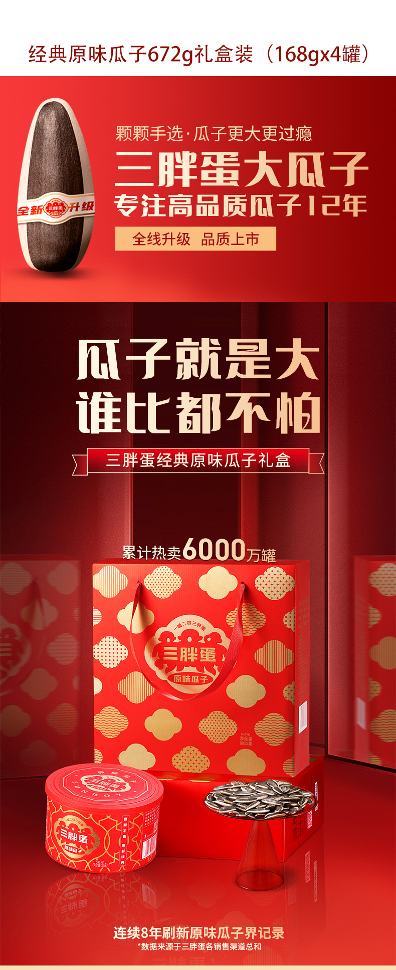 【瓜子界爱马仕】三胖蛋经典原味瓜子礼盒672g!十斤选二两,颗颗饱满,不脏手不上火,唠嗑必备!
