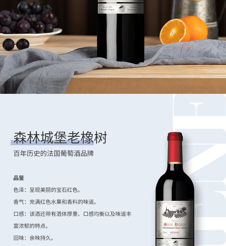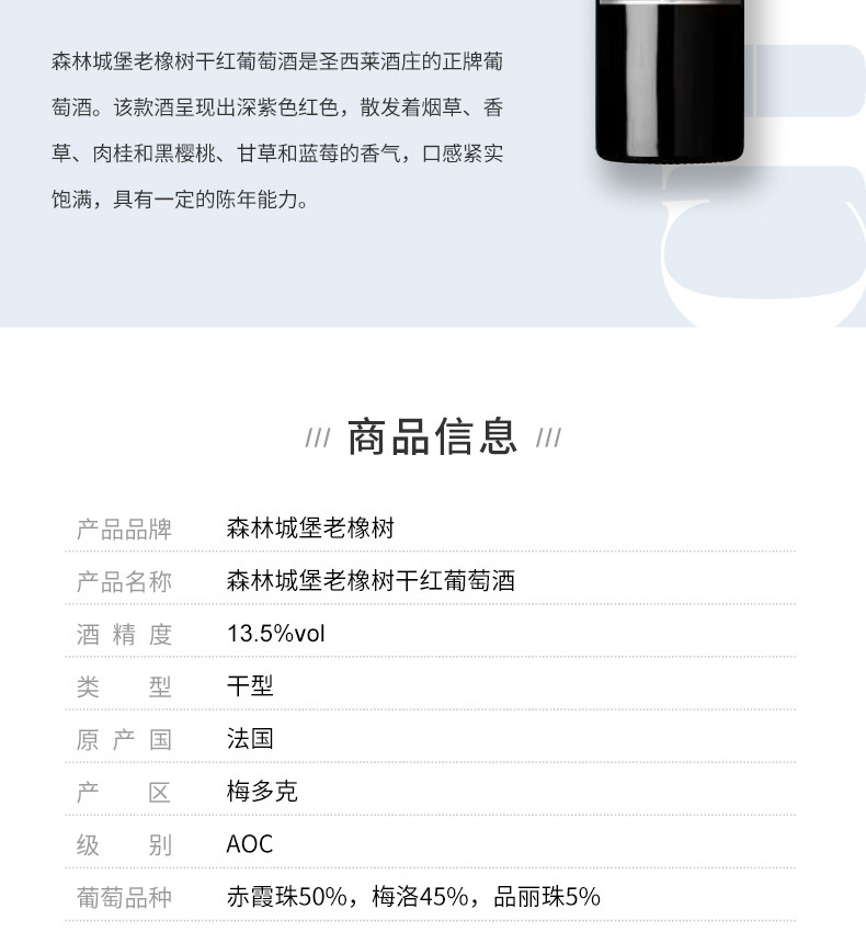 【6支装】橡树森林城堡 法国进口干红葡萄酒(中级庄)13.5%vol 750ml/瓶