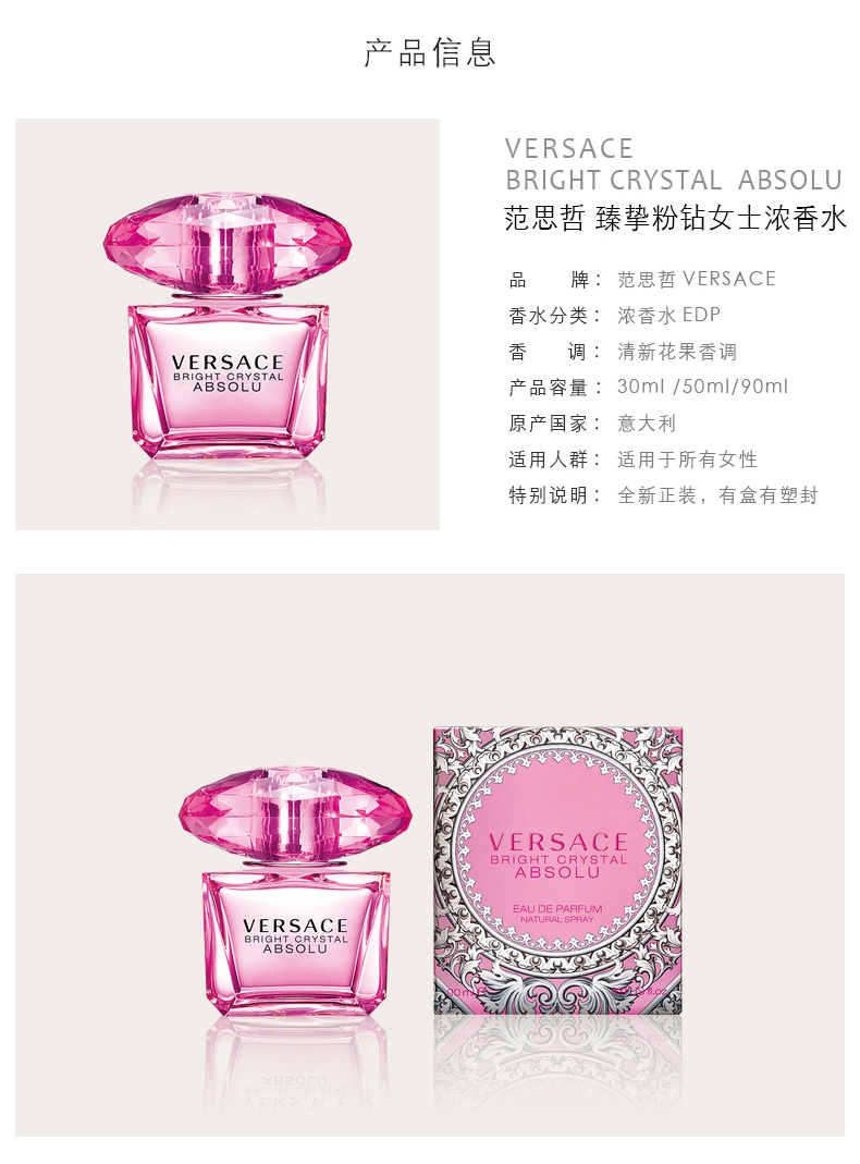 VERSACE范思哲晶钻挚臻粉钻女士淡香水花香大牌女香持久30ml/50ml/90ml