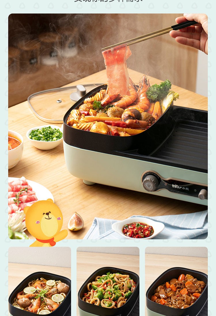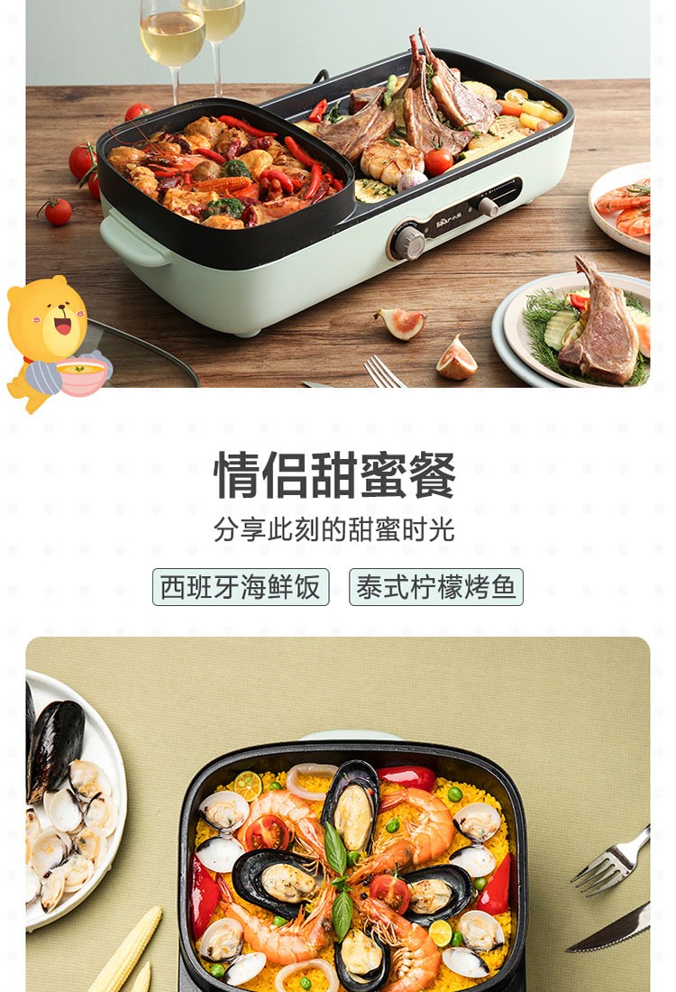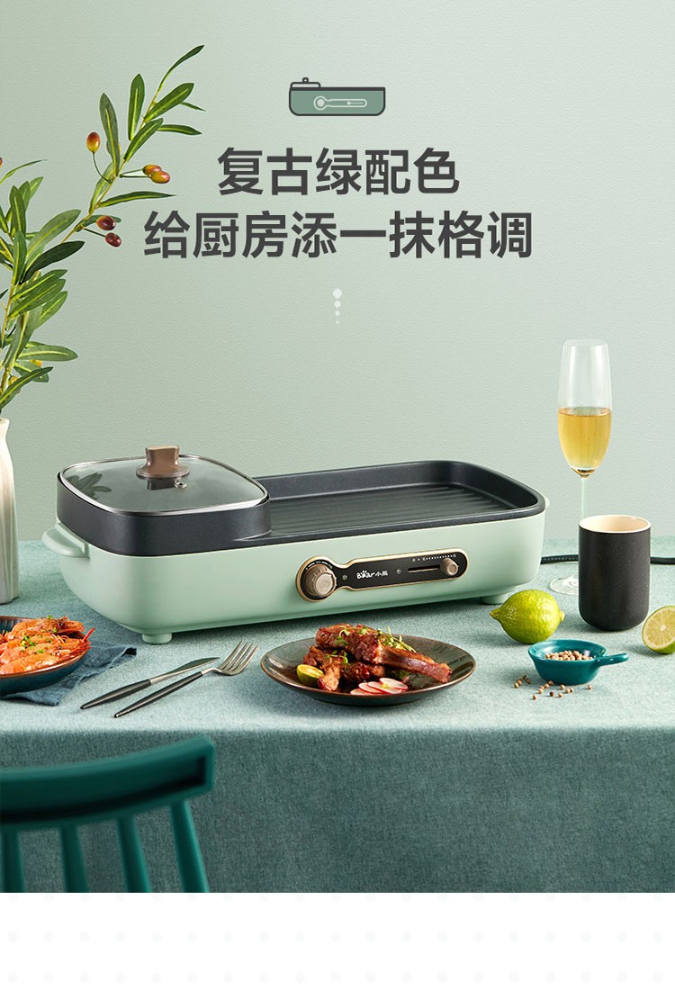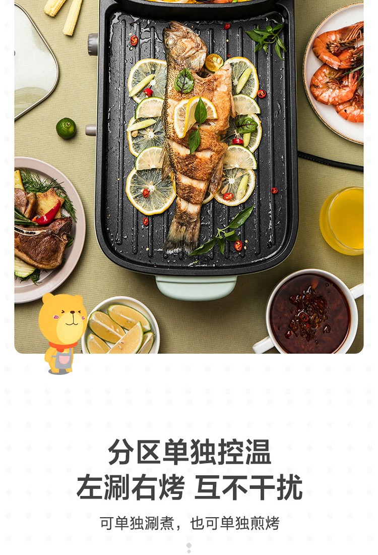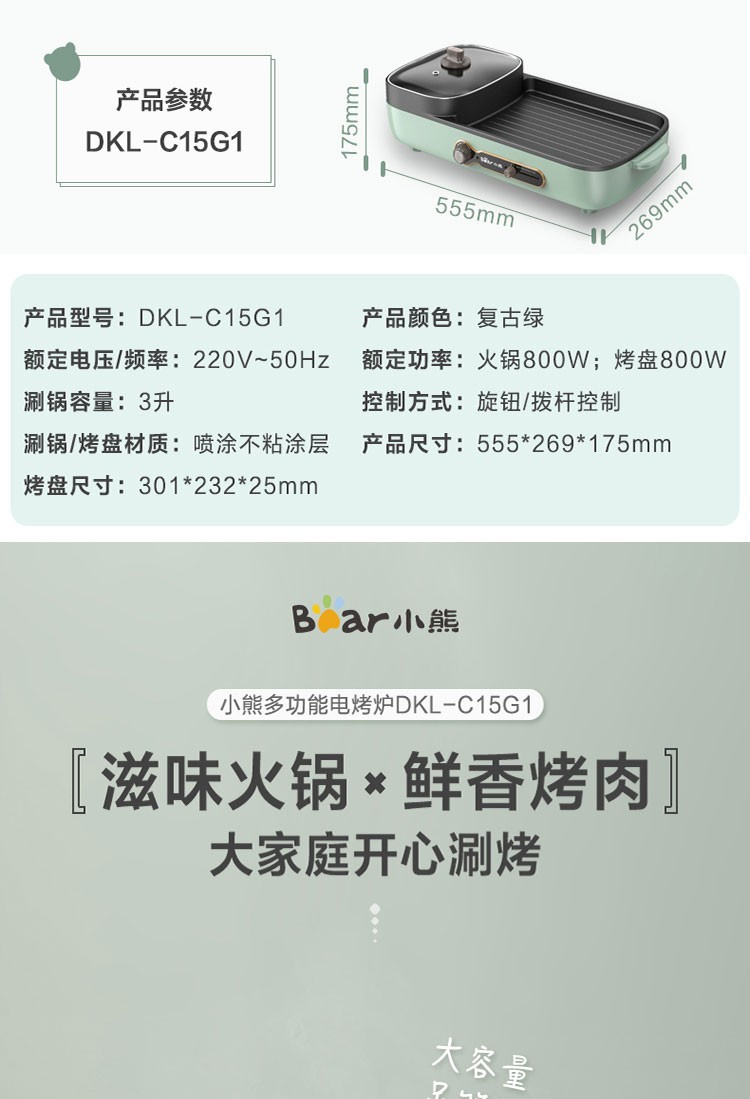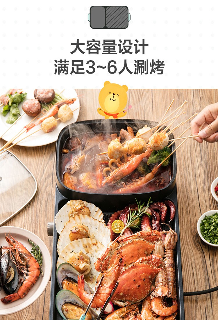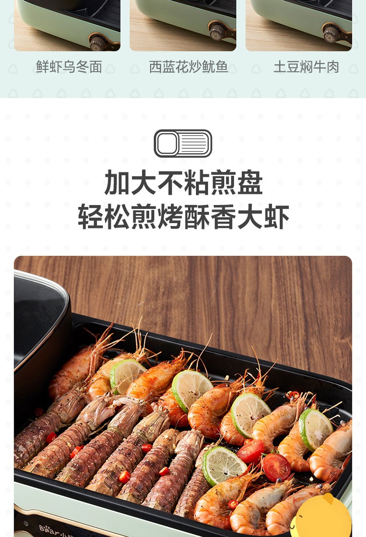小熊(Bear)电烧烤炉多功能电火锅 烤肉机烤涮一体锅烤肉烤串烧烤机 DKL-C15G1