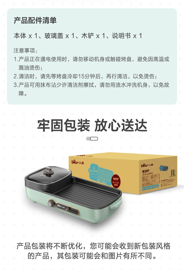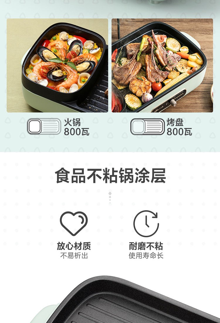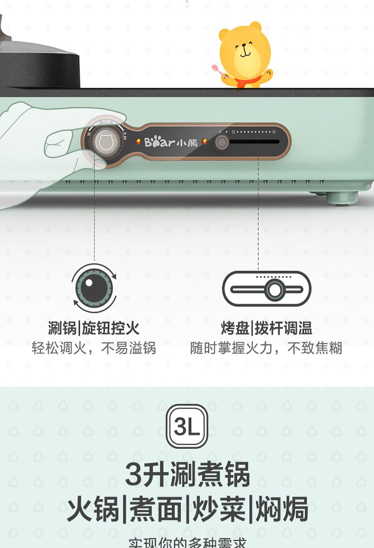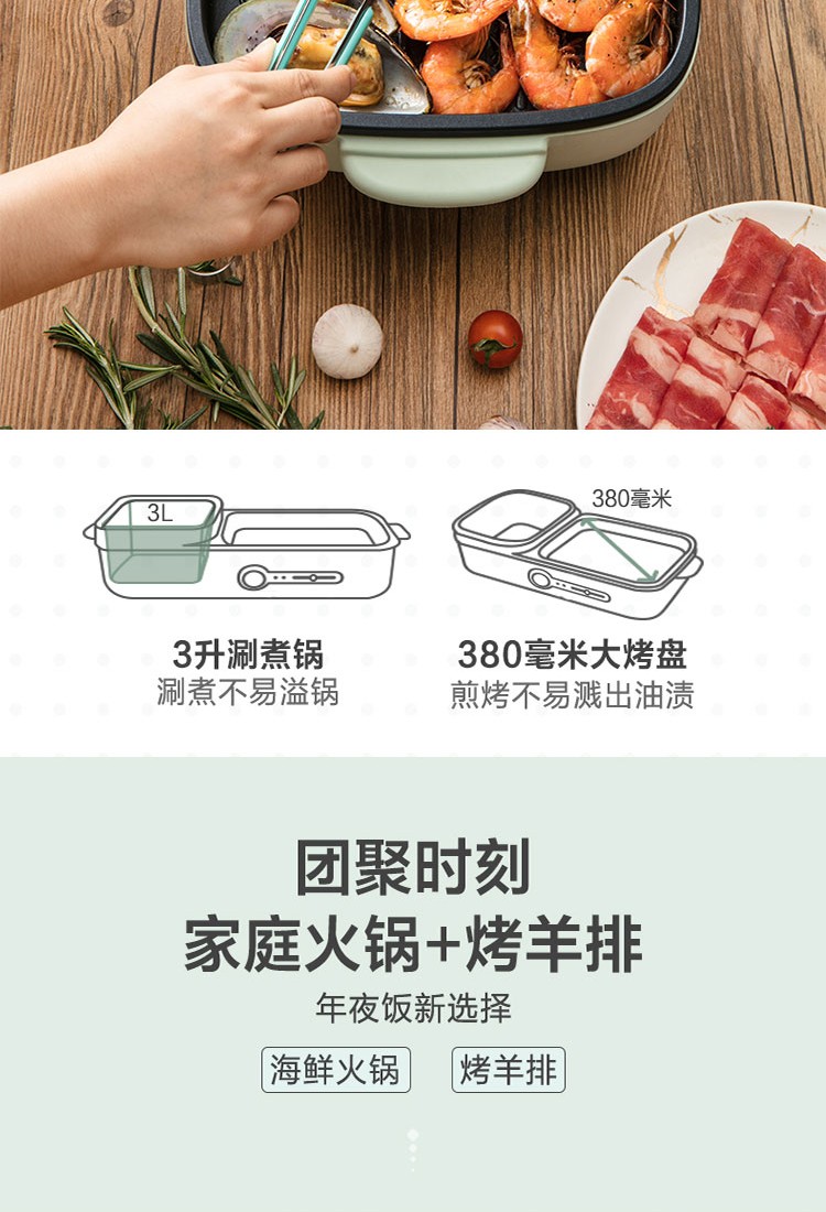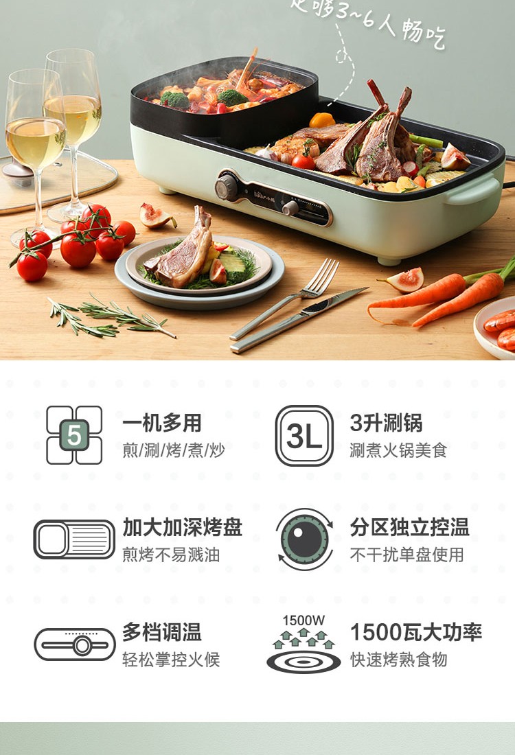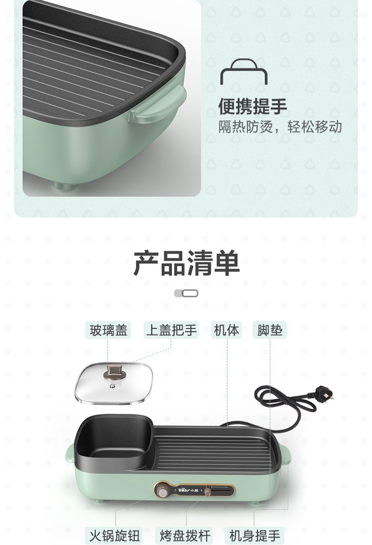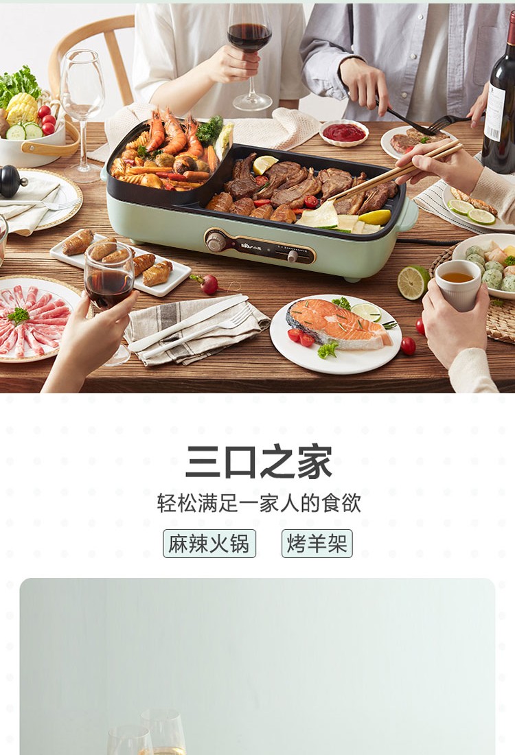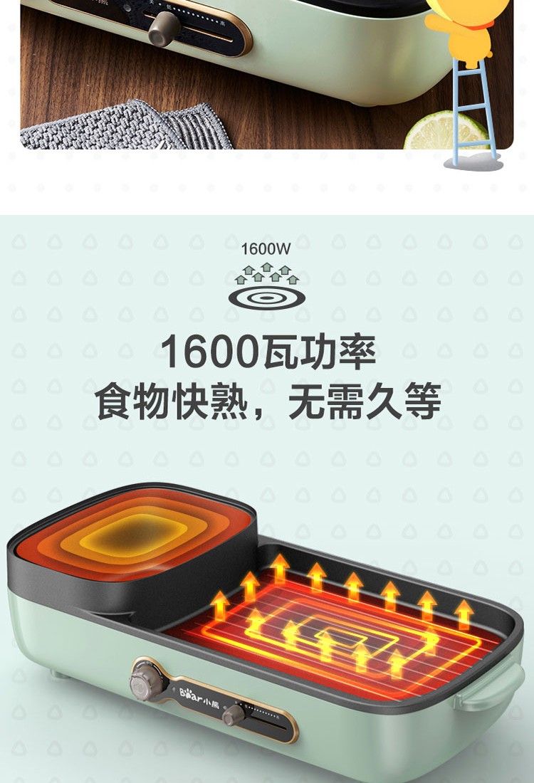 小熊(Bear)电烧烤炉多功能电火锅 烤肉机烤涮一体锅烤肉烤串烧烤机 DKL-C15G1