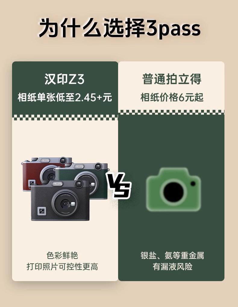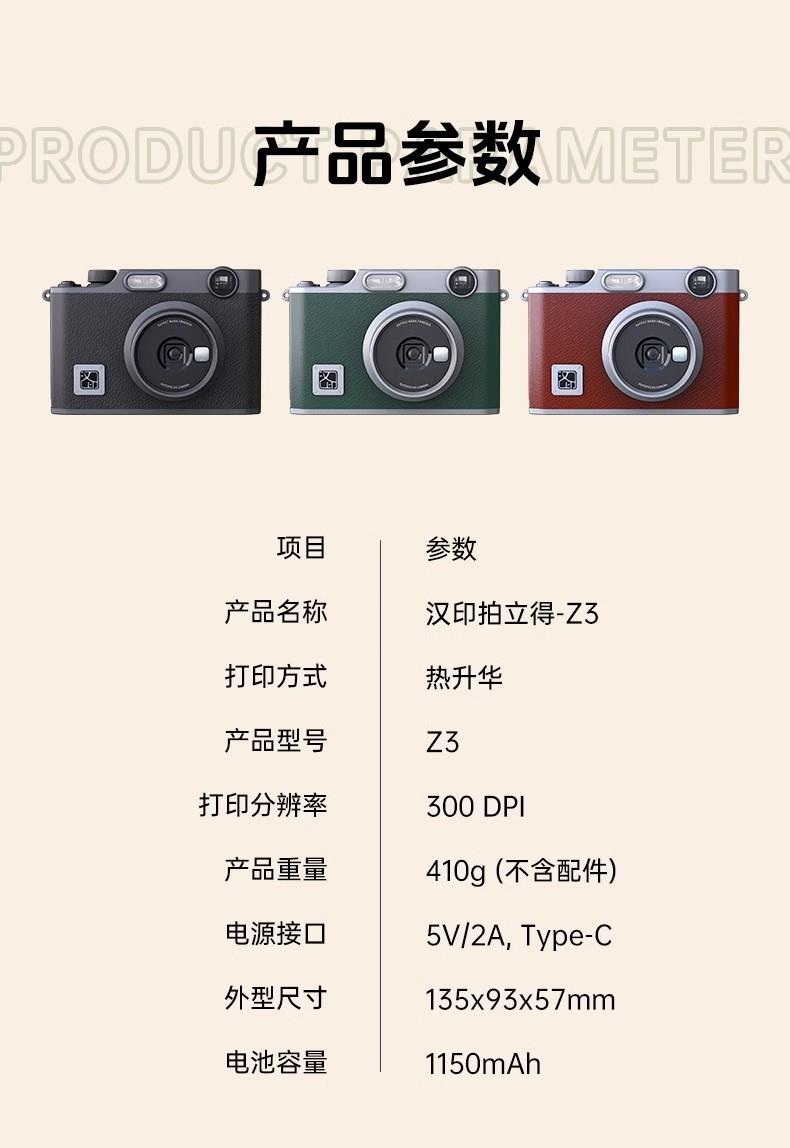 汉印Z3 拍立得 拍照打印一体照相机学生专用手机照片相片打印机家用迷你便携冲洗可打印彩色闺蜜生日礼物照片