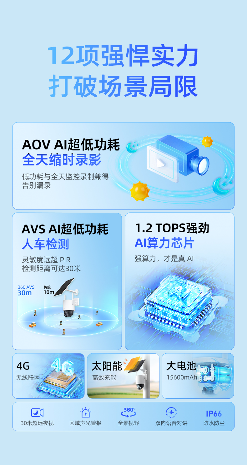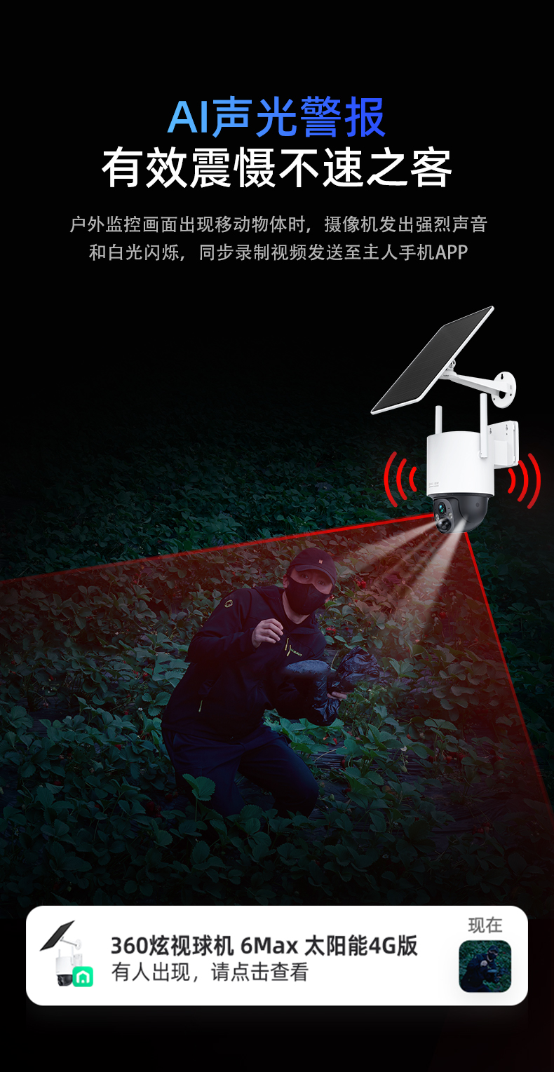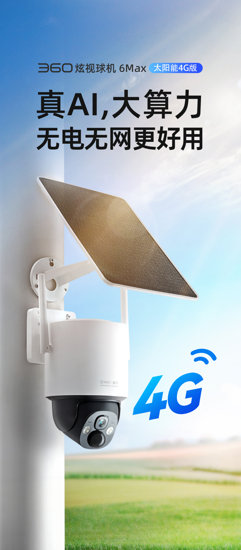 【专属】360炫视球机6Max太阳能4G版 AOV AI超低功耗 全天缩时录影 1.2 TOPS强劲 AI算力芯片 AI声光警报 持久续航不断电