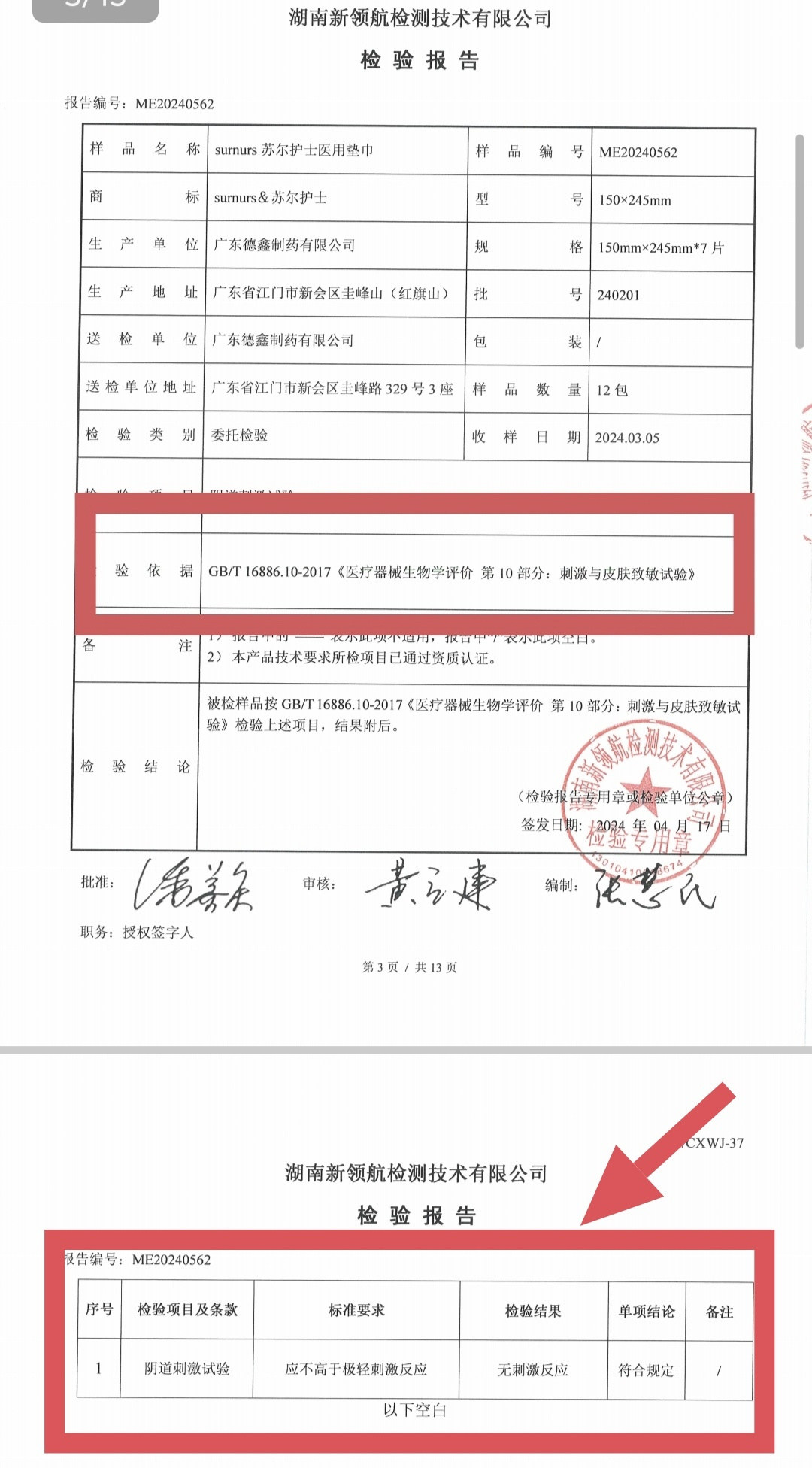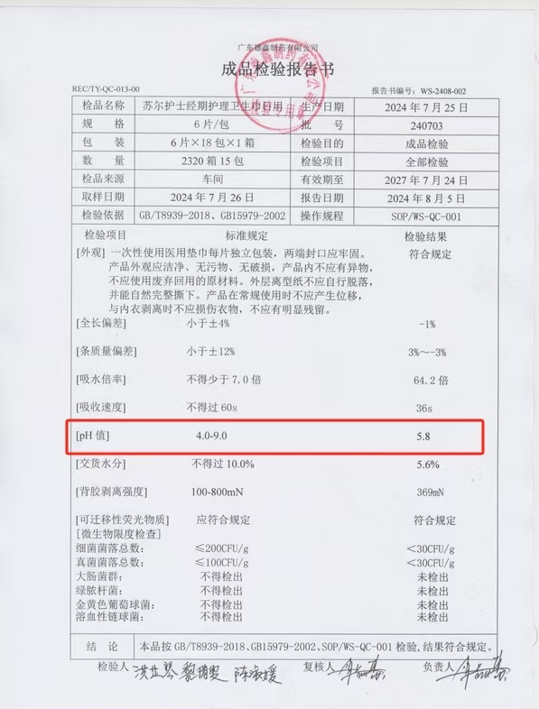 苏尔护士医用垫巾检测结果无刺激不过敏👍🏻👍🏻