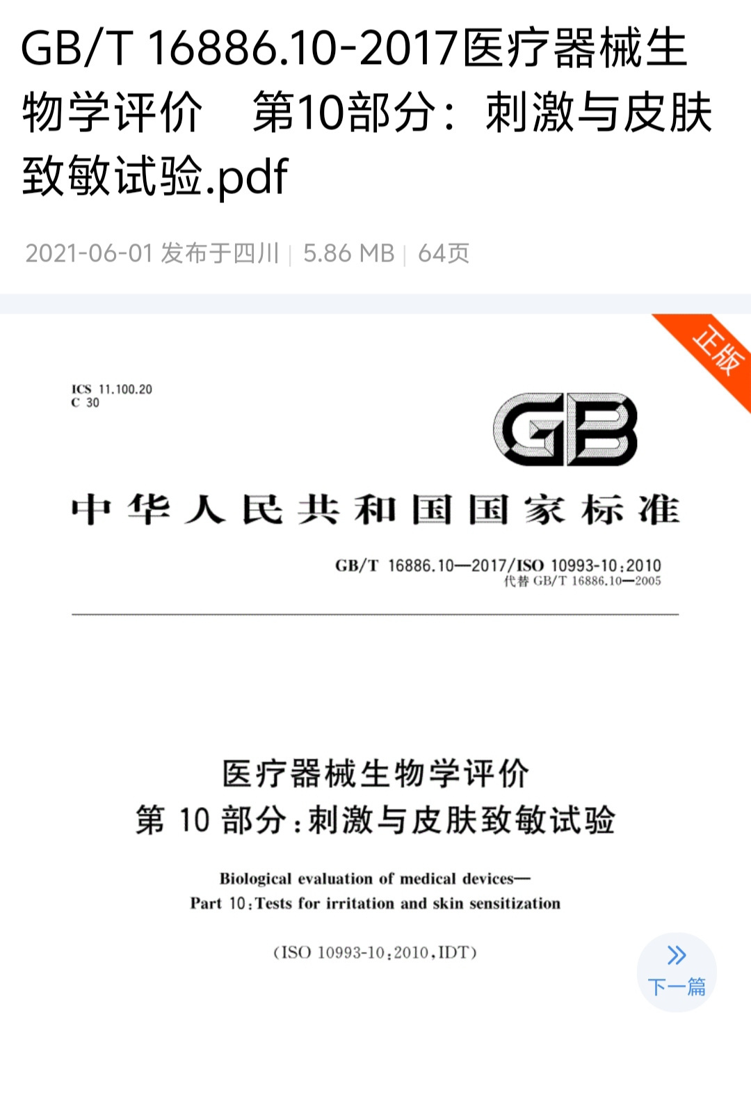 🏅🏅检验依据∶GB/P16886.10-2017《医疗器械物学评价第10部分,刺激与皮肤致敏实验》