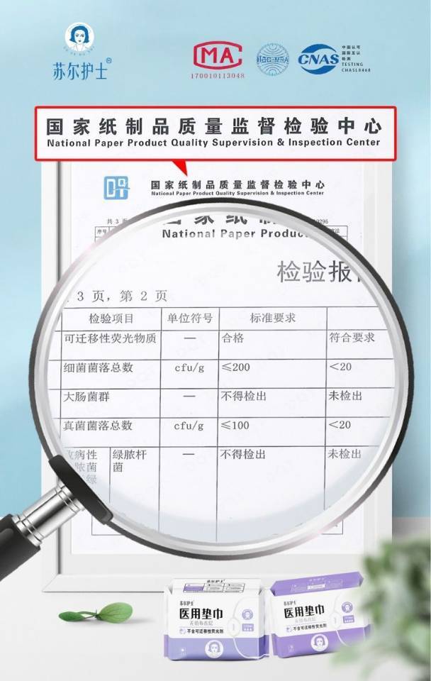苏尔护士医用垫巾拥有《国家纸质品质量监督检测中心》出具的权威检测报告,更安全放心❗