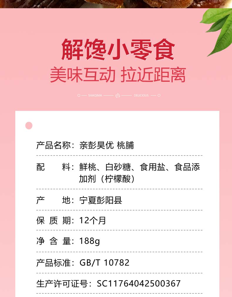 亲彭昊优彭阳桃脯188g(KBJ)(仅限福建省内配送,满400元包邮)