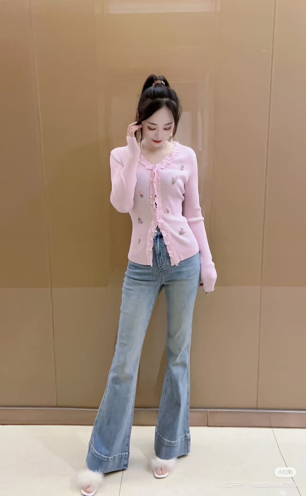 卡码拍小!【半高领木耳边内搭打底衫】秋冬季内搭2024新款中领长袖毛衣