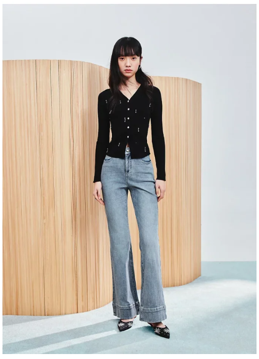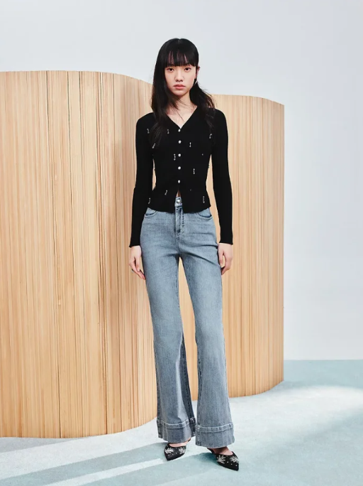MAXRIENY精致日常复古洗水微喇牛仔裤女MC86PA016B60