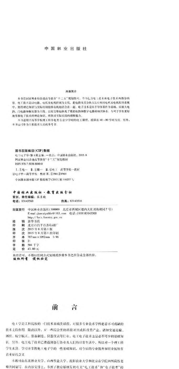 电工电子学 8010 国家林业局普通高等教育十二五规划教材 中国林业出版社教材