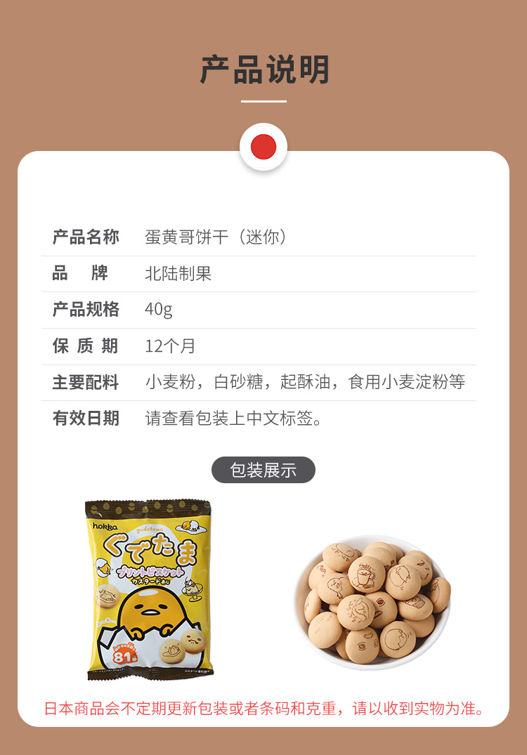 北陆制果 蛋黄君 蛋奶味 饼干 40g/袋
