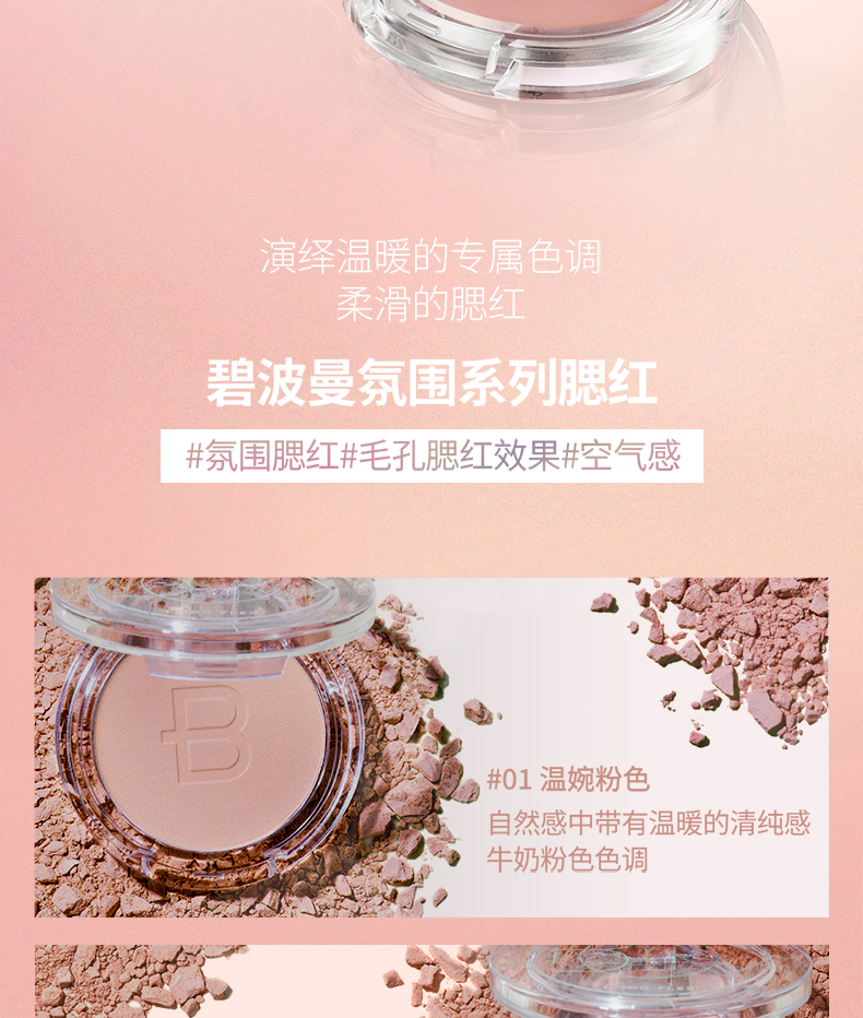 碧波曼 氛围系列腮红 01温婉粉色 4.5g