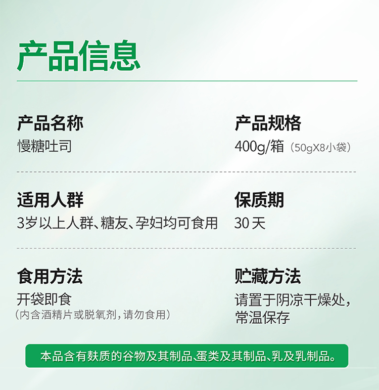 【营养早餐专区】慢糖吐司 50gX8包