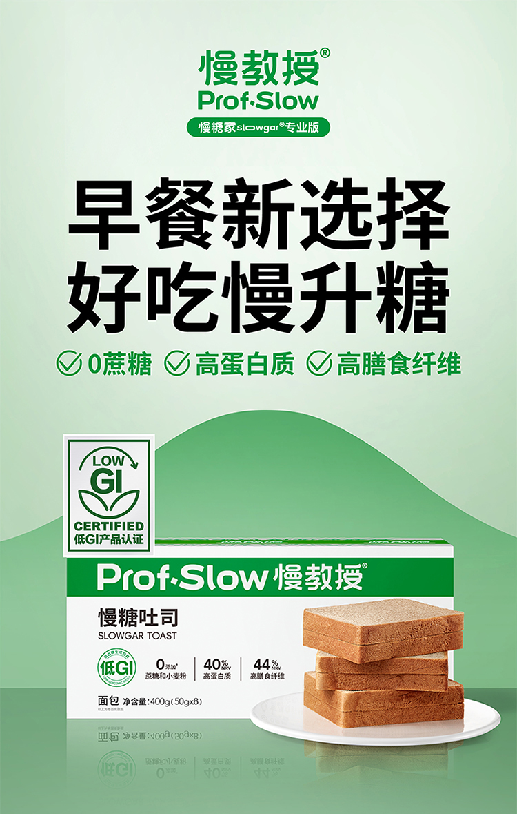 「慢教授ProfSlow」(原慢糖家),专注于科学控糖的健康营养品牌。由2位浙大校友创立,联合全球优秀的食品科学家和健康营养专家,为有控糖需求的用户研发好吃、低升糖的健康食品和营养补充剂。
