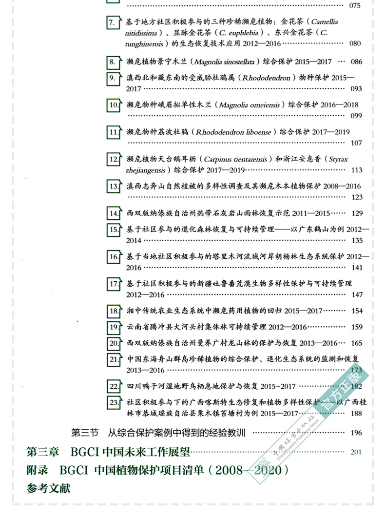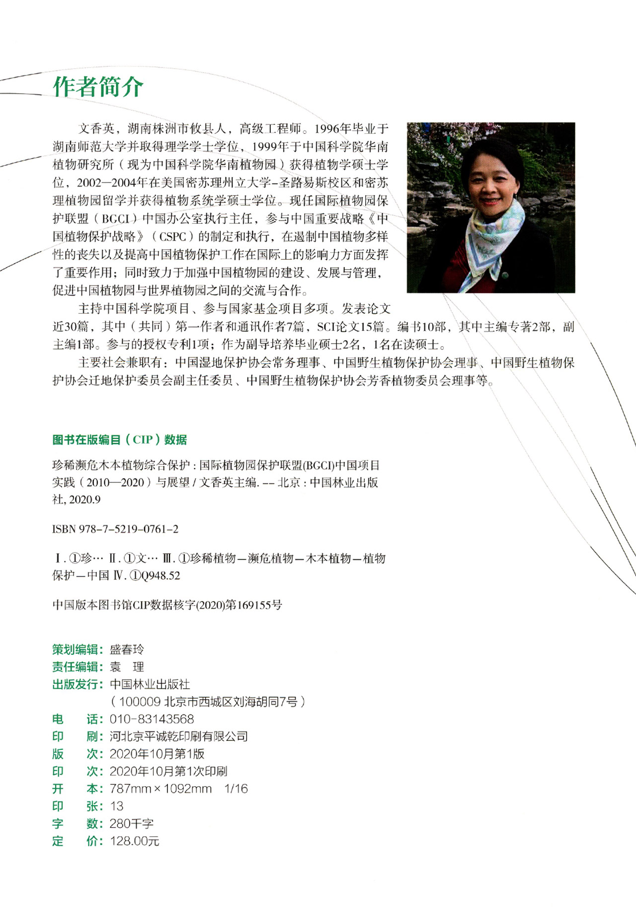 珍稀濒危木本植物综合保护:国际植物园保护联盟(BGCI) 中国项目实践(2010-2020)及展望》0761中国林业出版社