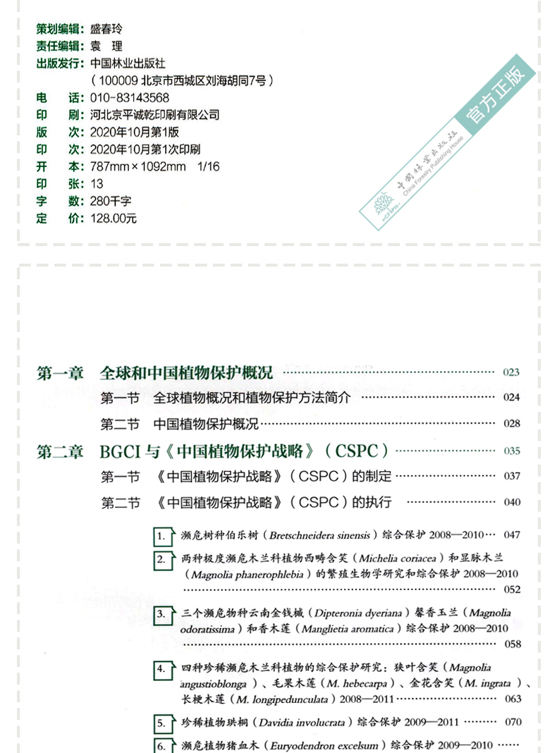 另一方面可以为中国植物保护者提供有参考价值的保护经验;该书将为中国的植物保护事业,为践行“绿水青山就是金山银山”发展理念,实现生态文明建设和美丽中国做出更多更好的贡献。