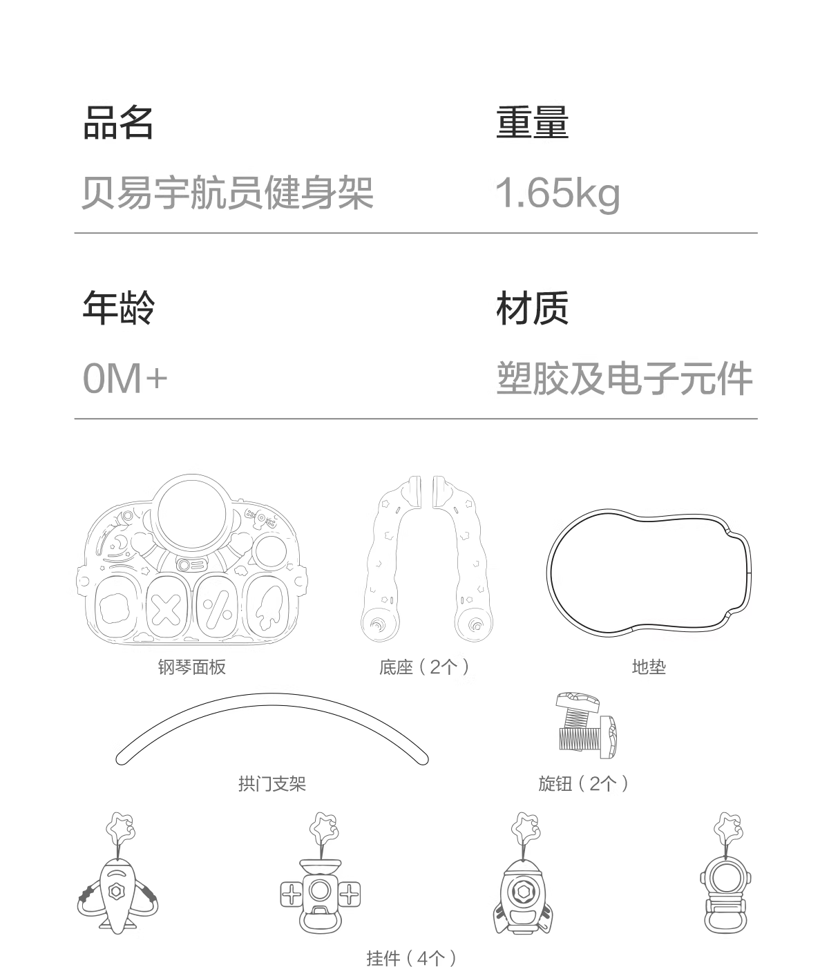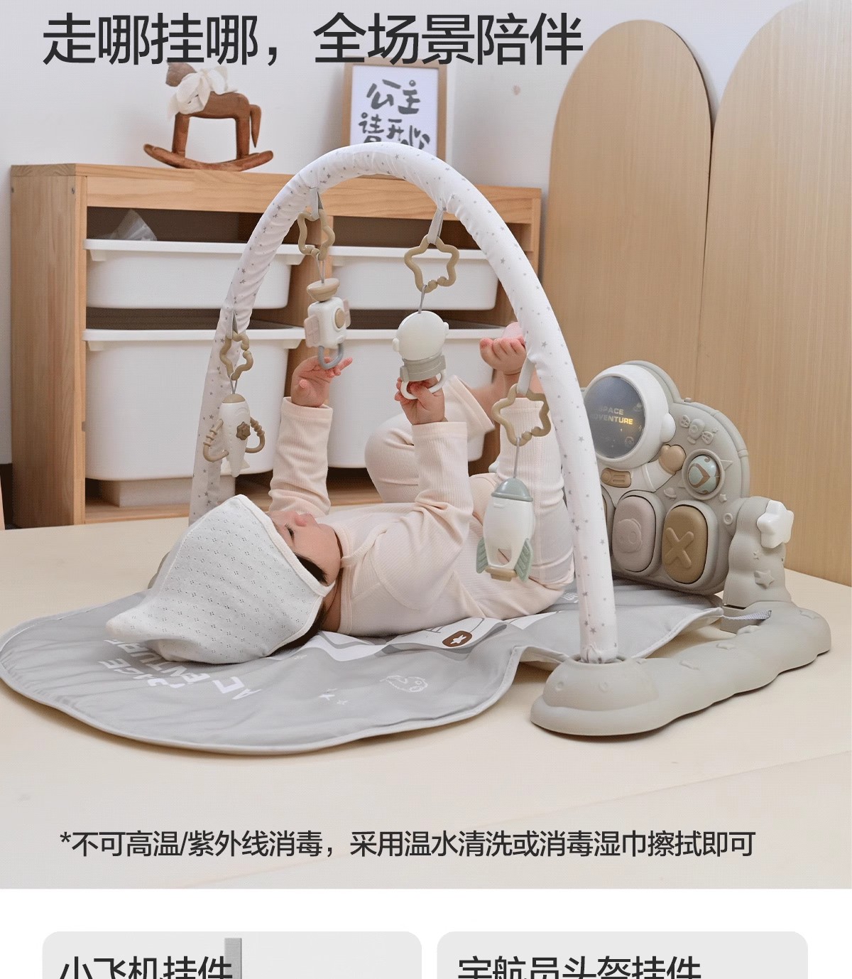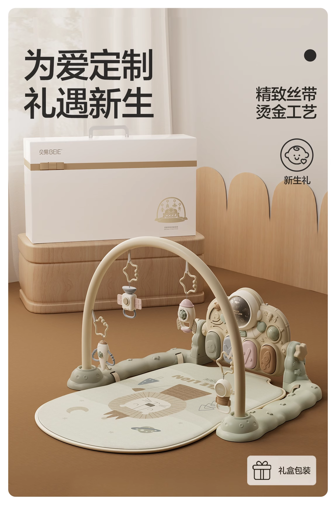 贝易婴儿健身架脚踏钢琴礼盒新生儿见面礼物幼儿0到6个月婴儿玩具【宇航员健身架】【会员下单送小汽车+彩虹凉席】