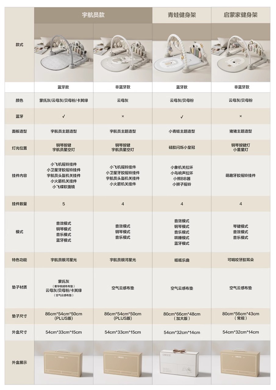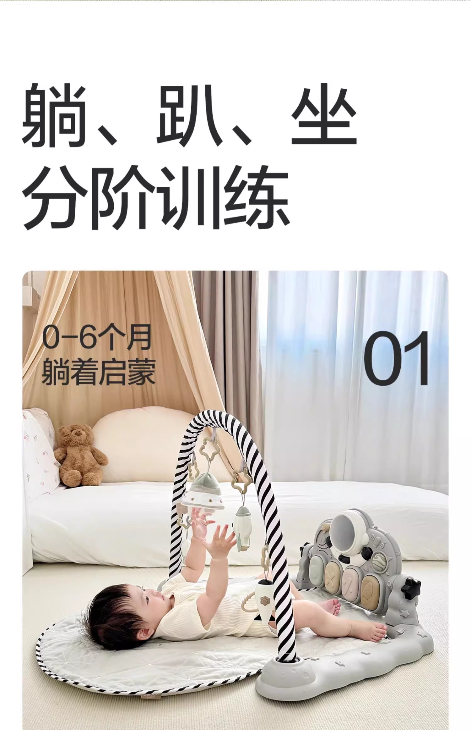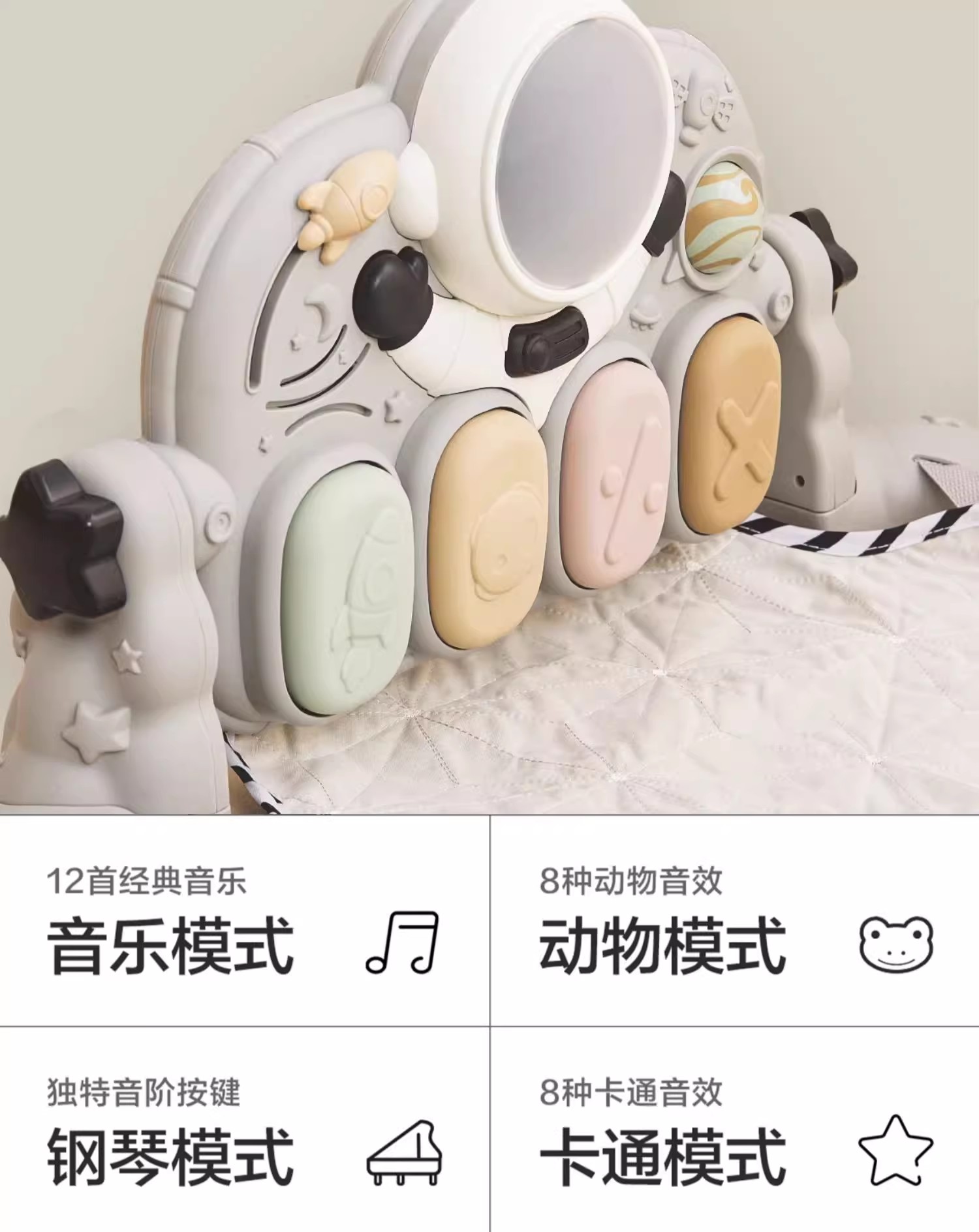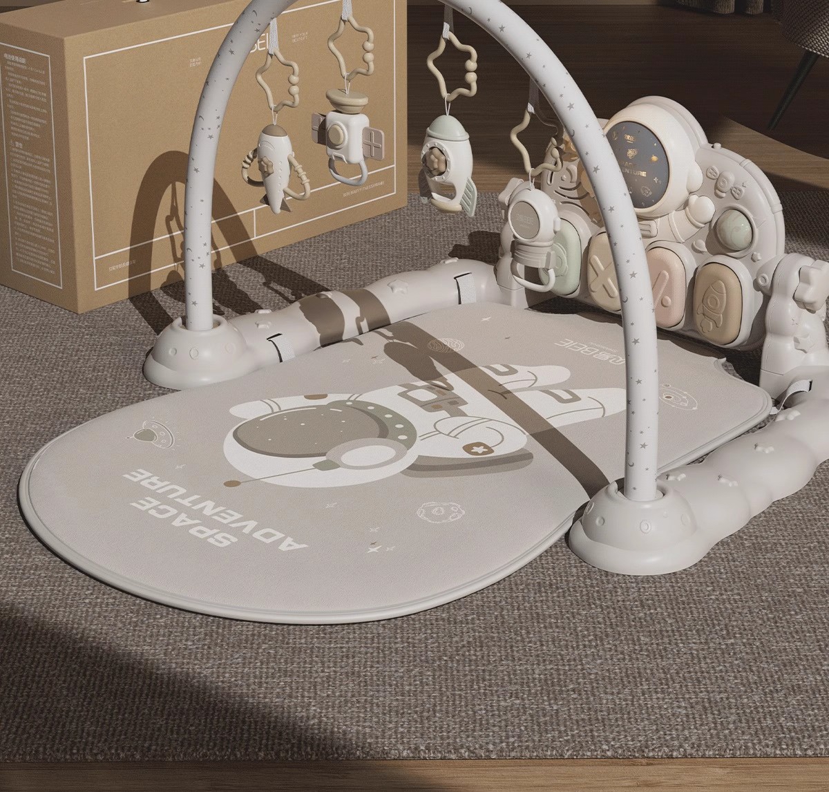 贝易婴儿健身架脚踏钢琴礼盒新生儿见面礼物幼儿0到6个月婴儿玩具【宇航员健身架】【会员下单送小汽车+彩虹凉席】