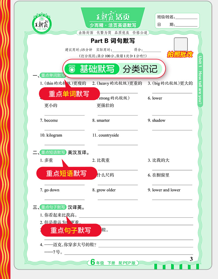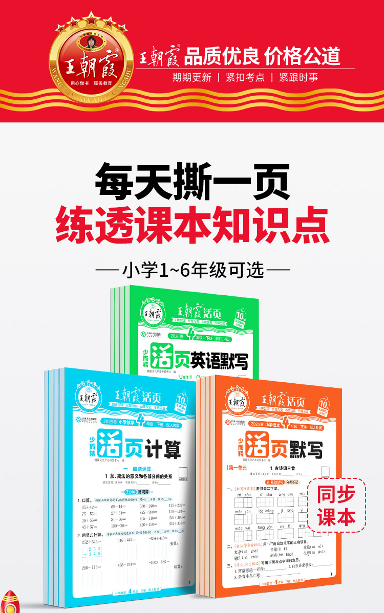 2026春语文活页默写/数学活页计算/英语活页默写 1-6年级下册