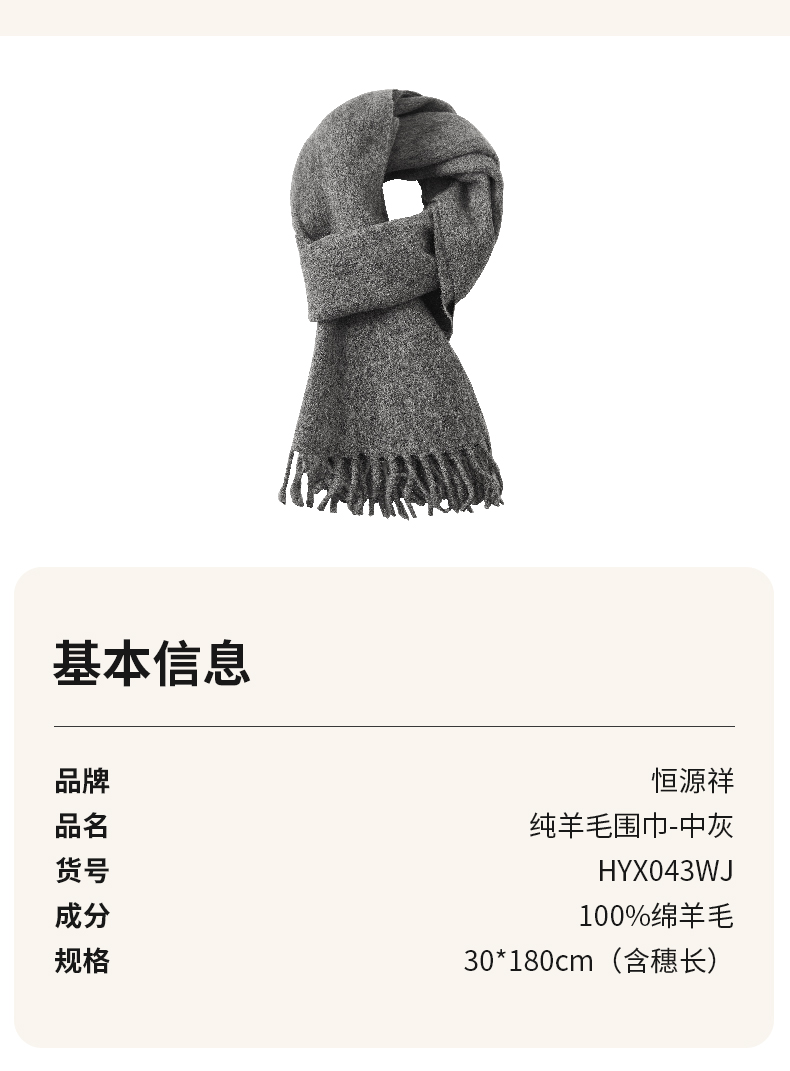 恒源祥 纯羊毛围巾-中灰 HYX043WJ