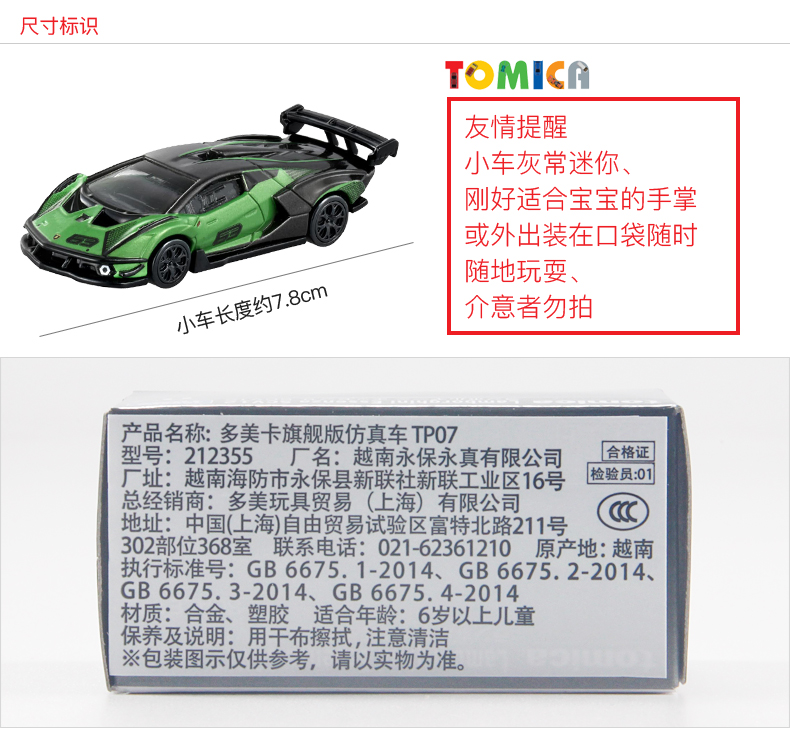 多美卡 旗舰版仿真车 TP07 兰博基尼SCV12跑车 车长约7.8cm 底盘及尾翼可拆卸