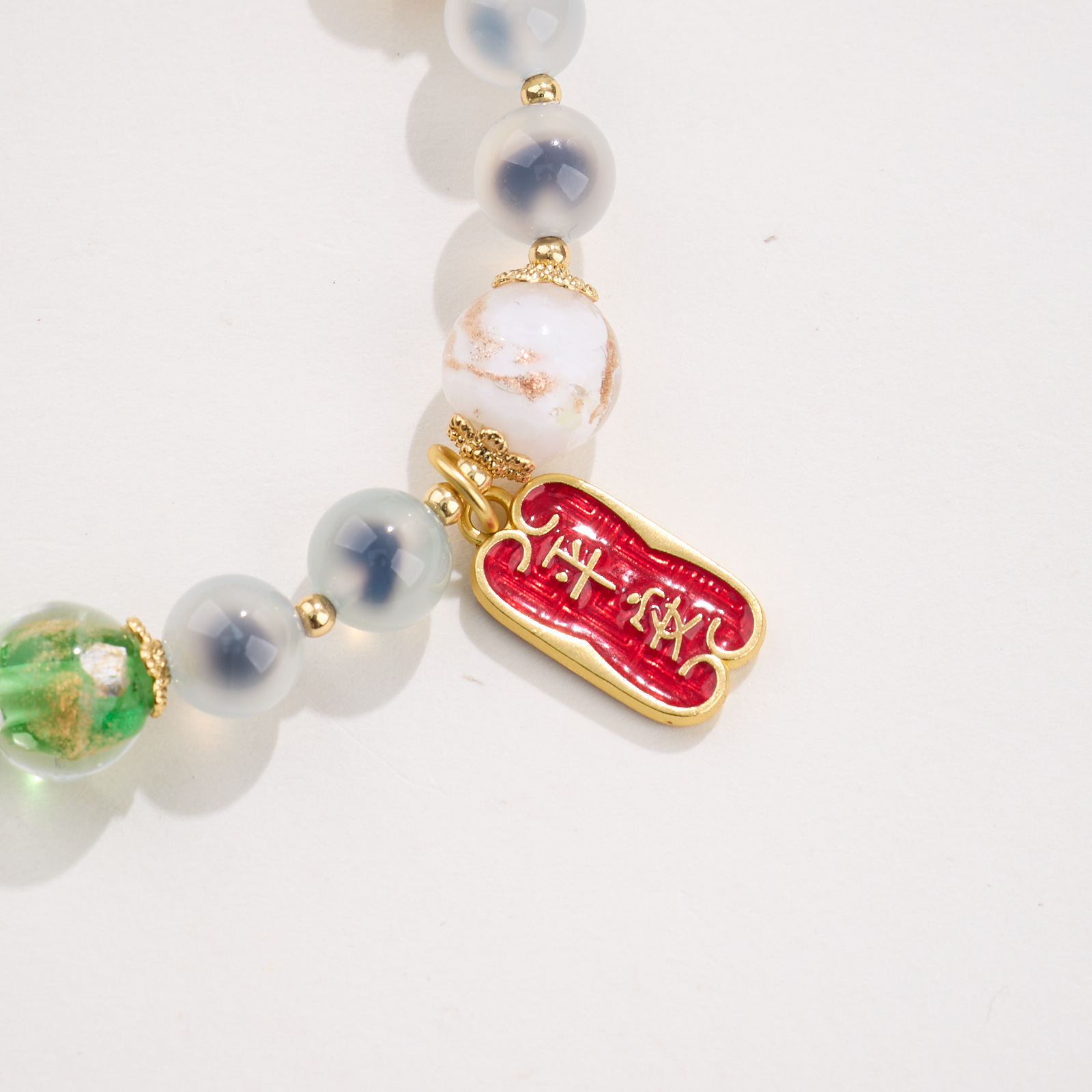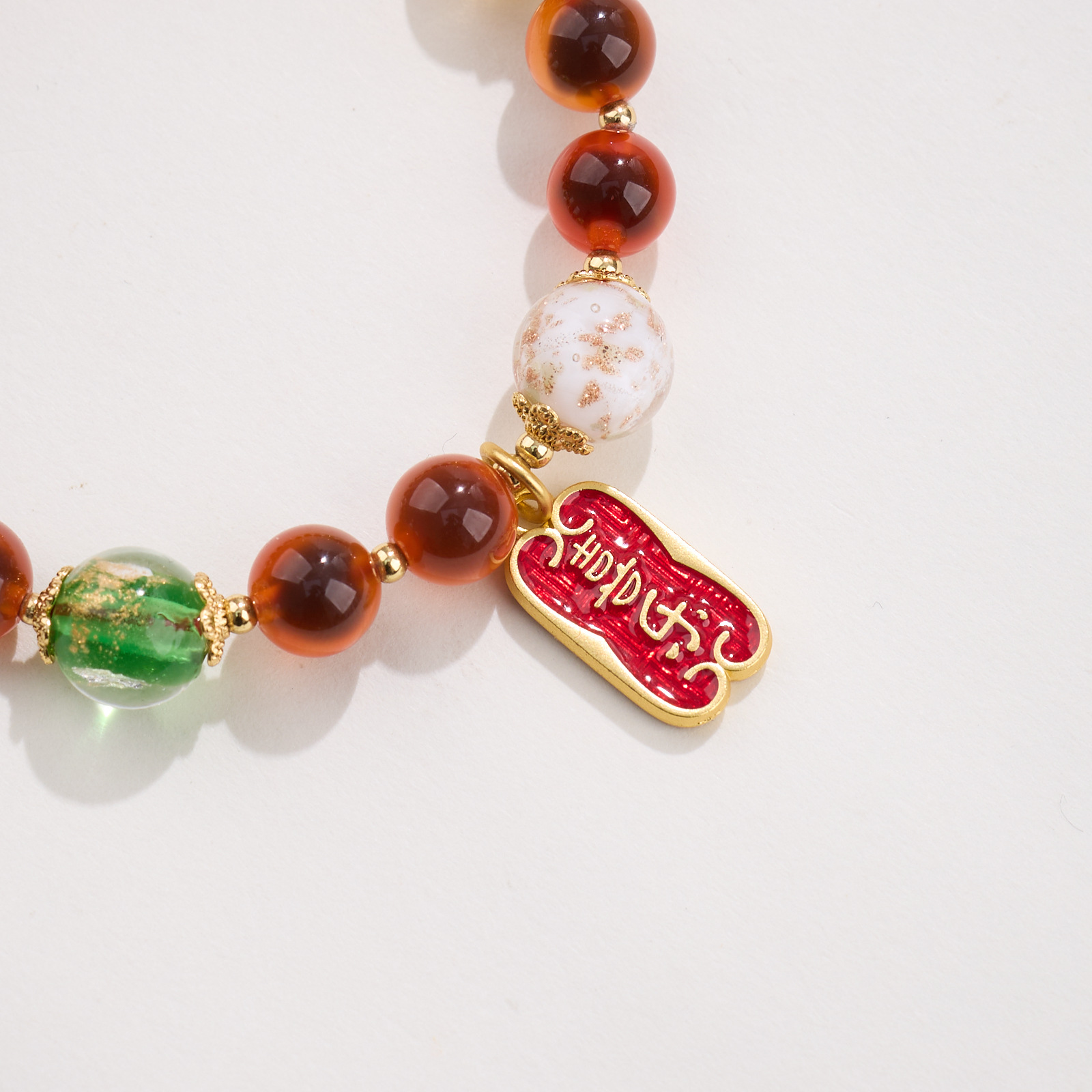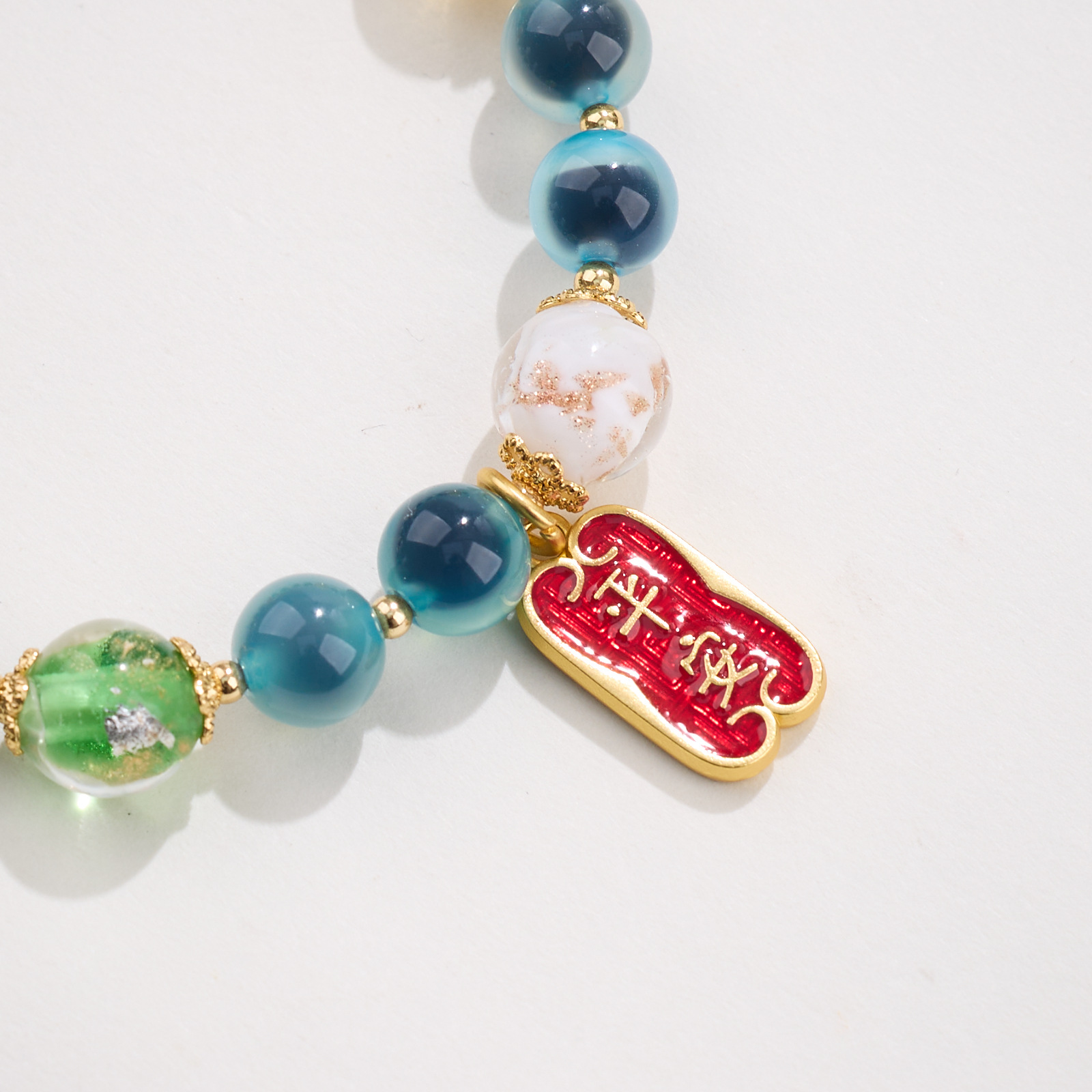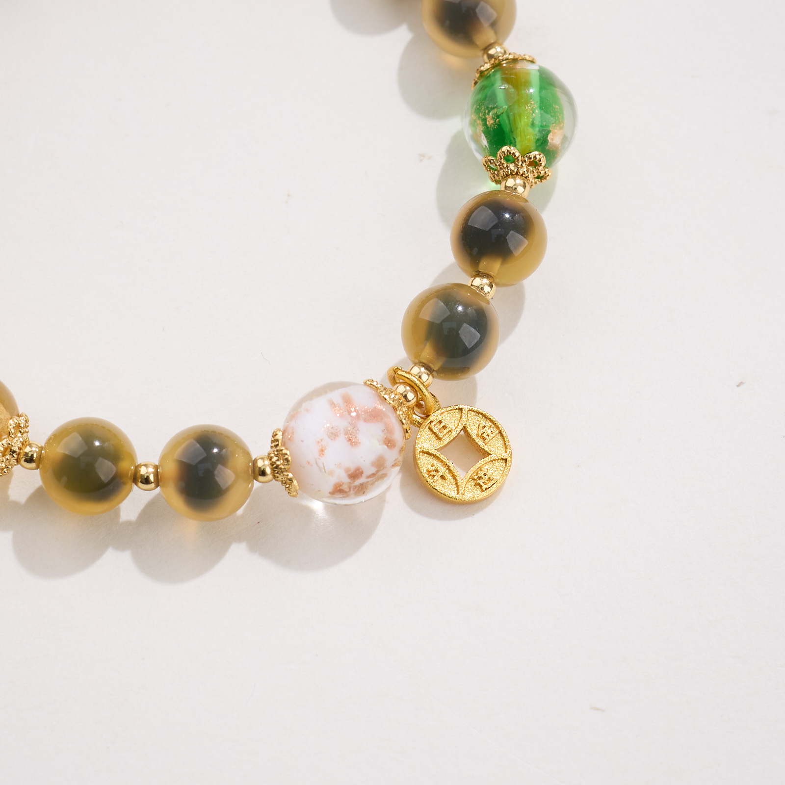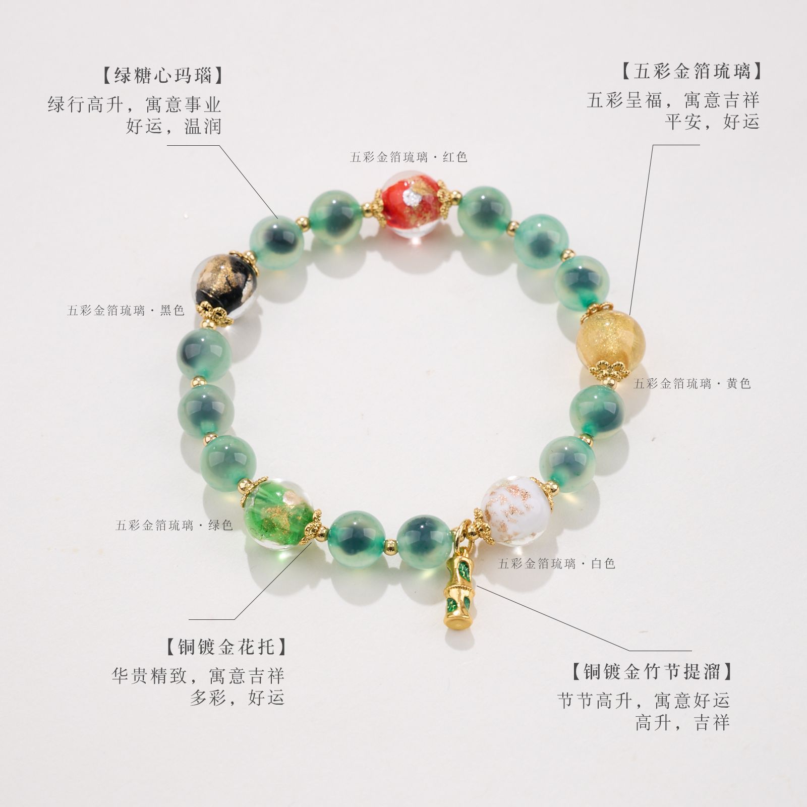 【材质】金箔琉璃、糖心玛瑙、铜镀金配件