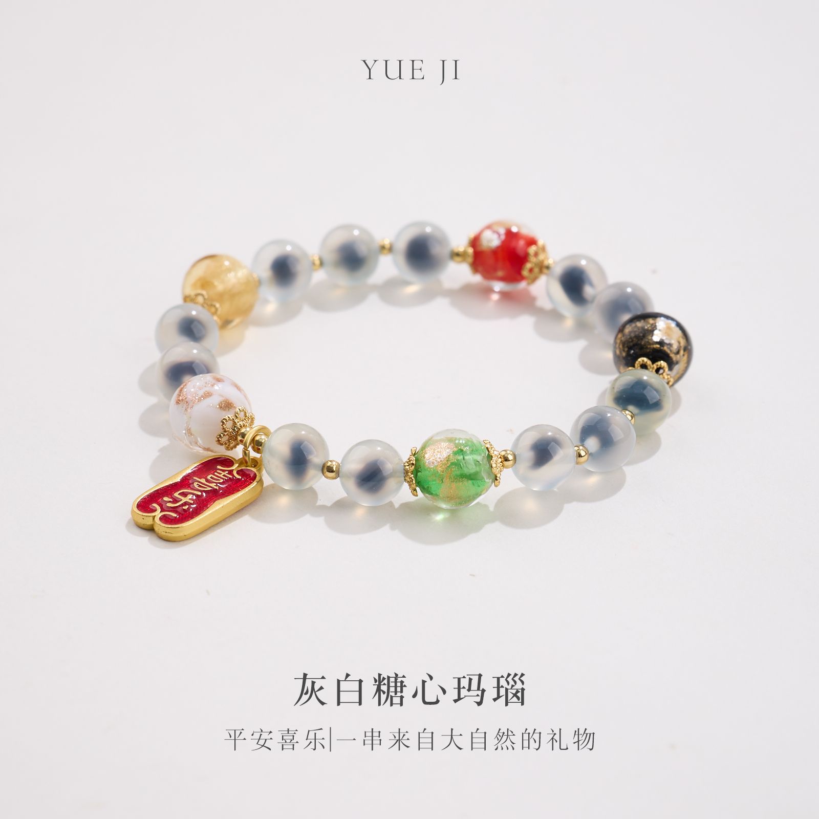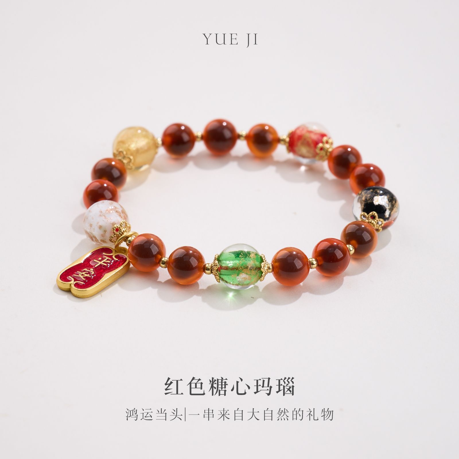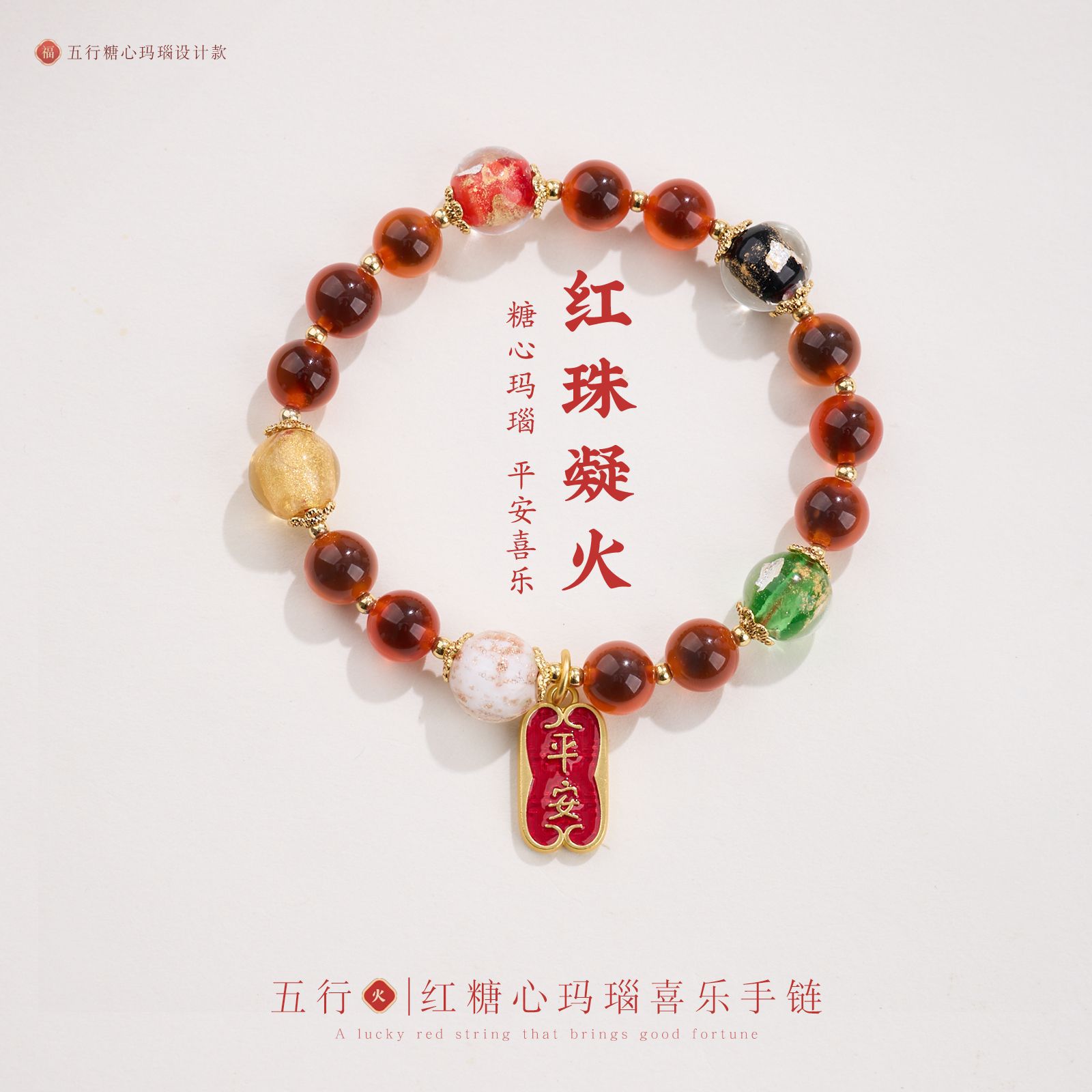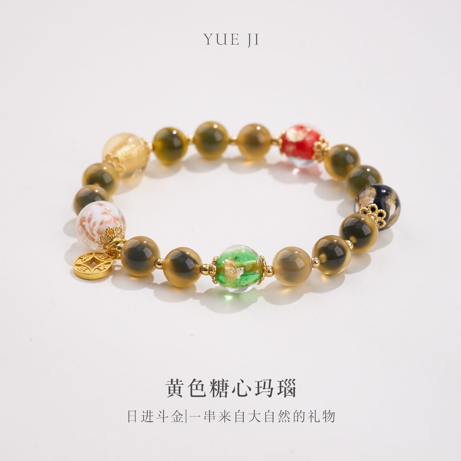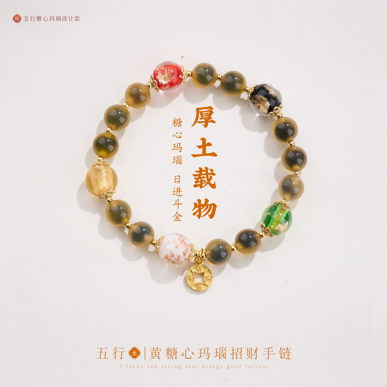 【五行糖心玛瑙手串】敦煌福泽五行糖心玛瑙金箔琉璃手链串珠女轻奢高级感溏心玛瑙手串手饰