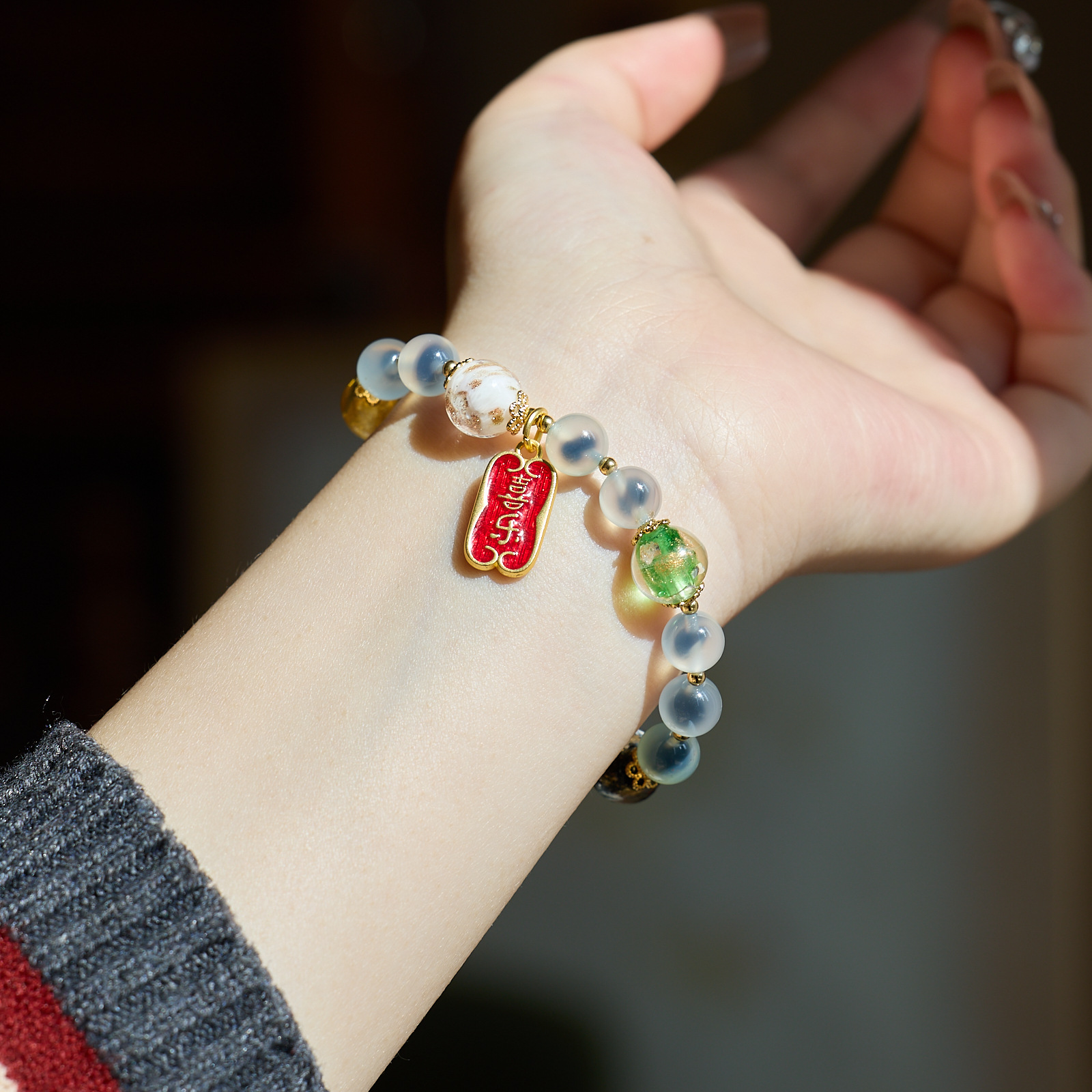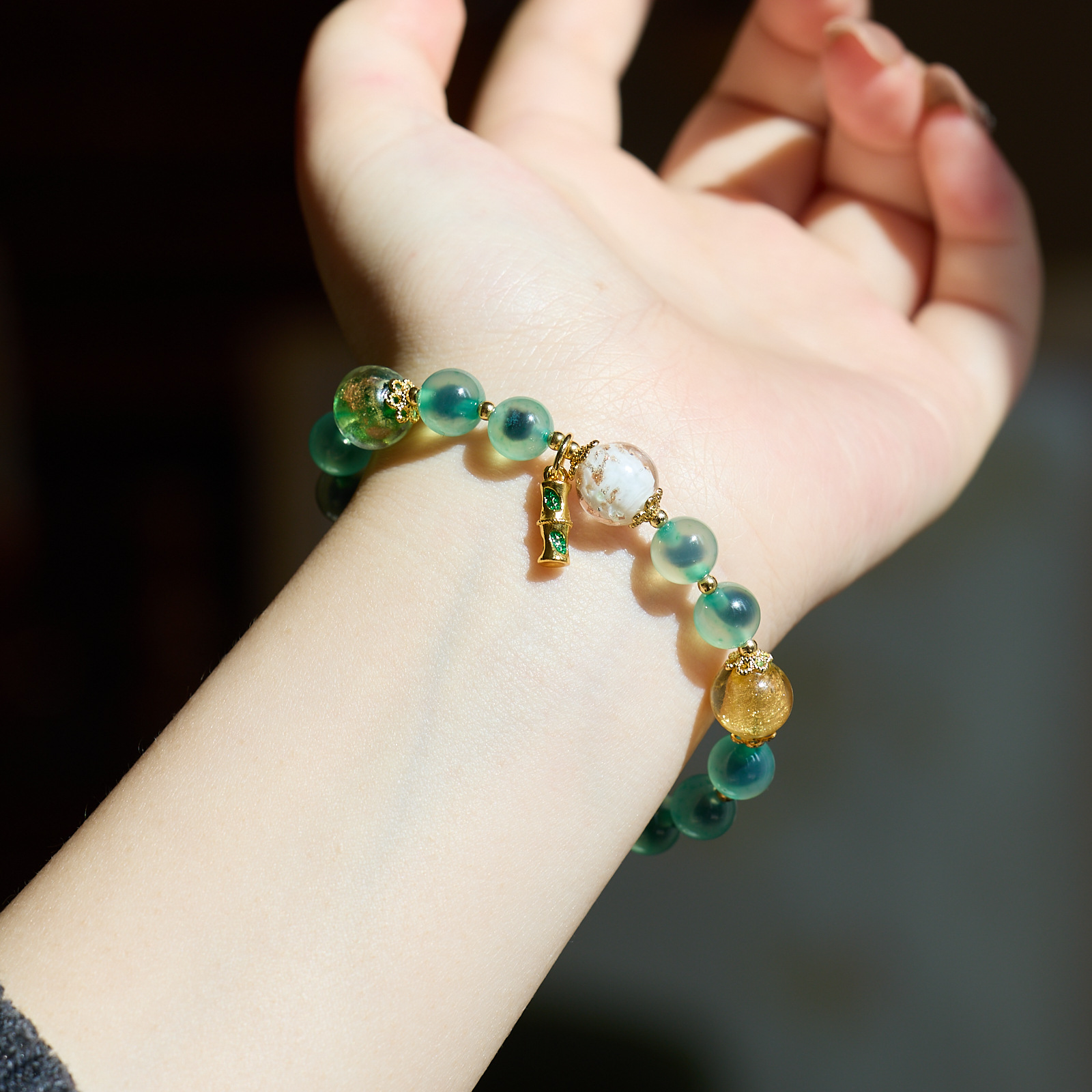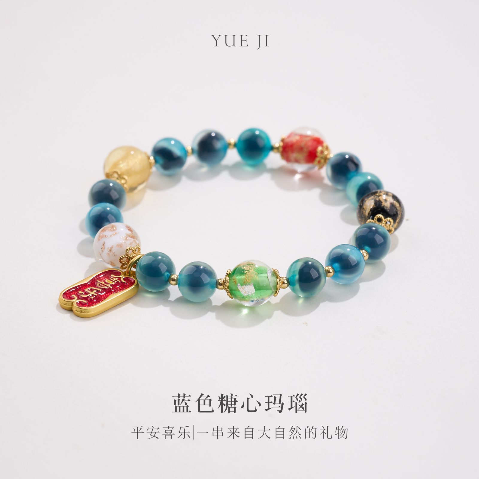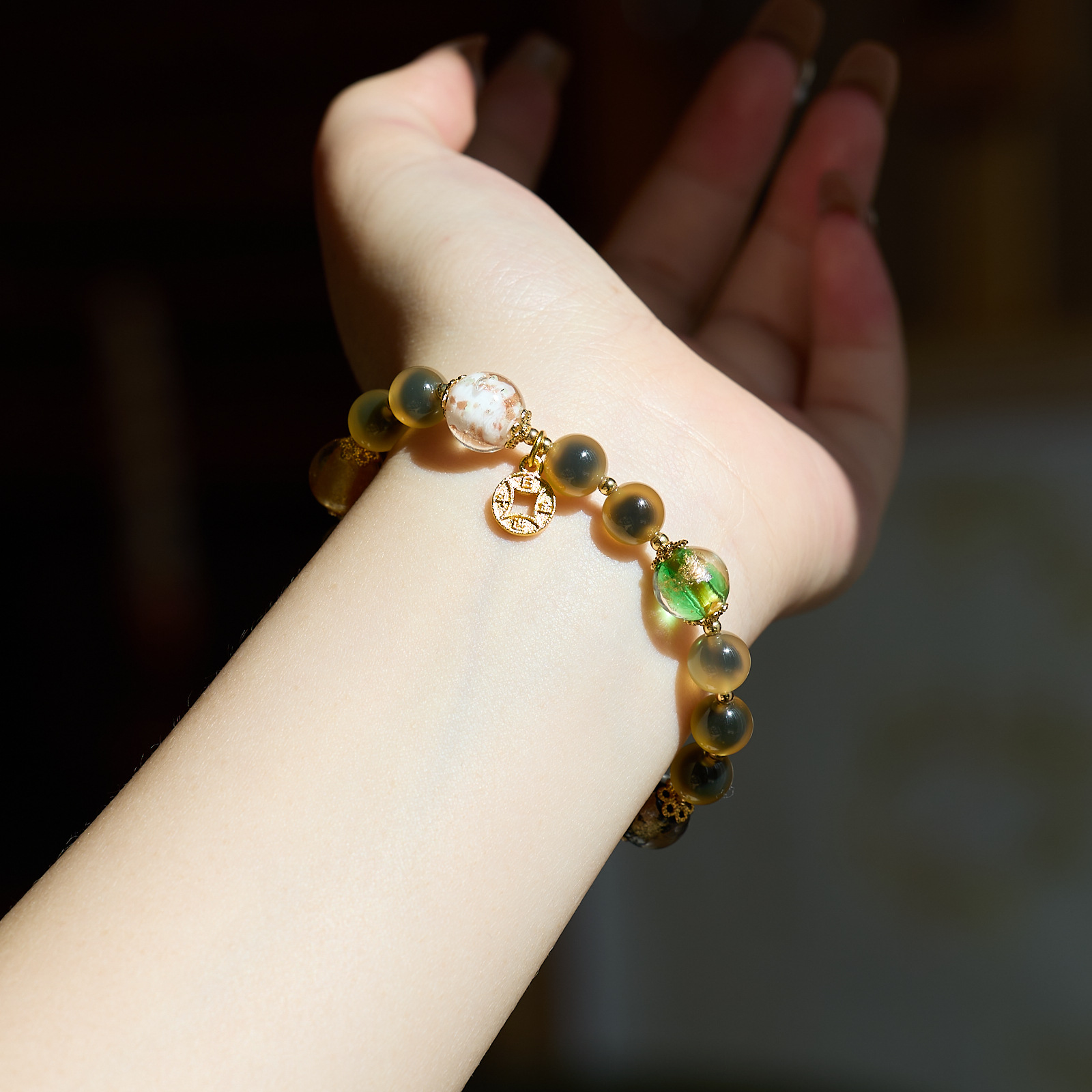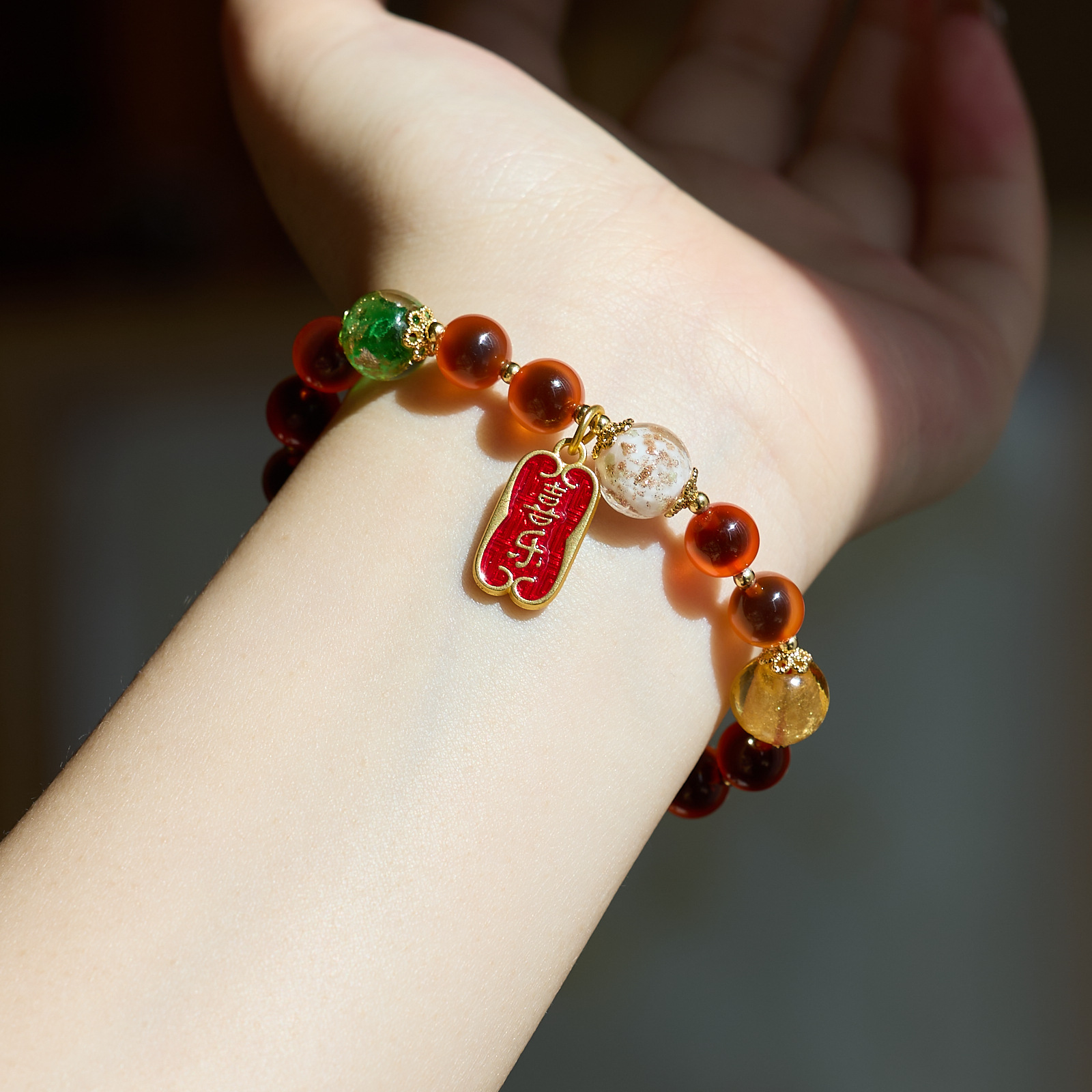 【五行糖心玛瑙手串】敦煌福泽五行糖心玛瑙金箔琉璃手链串珠女轻奢高级感溏心玛瑙手串手饰